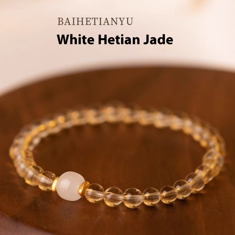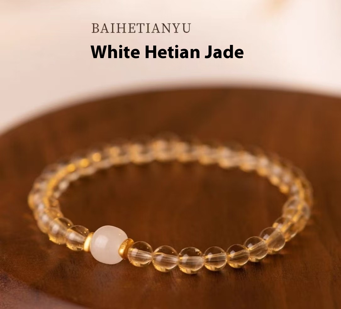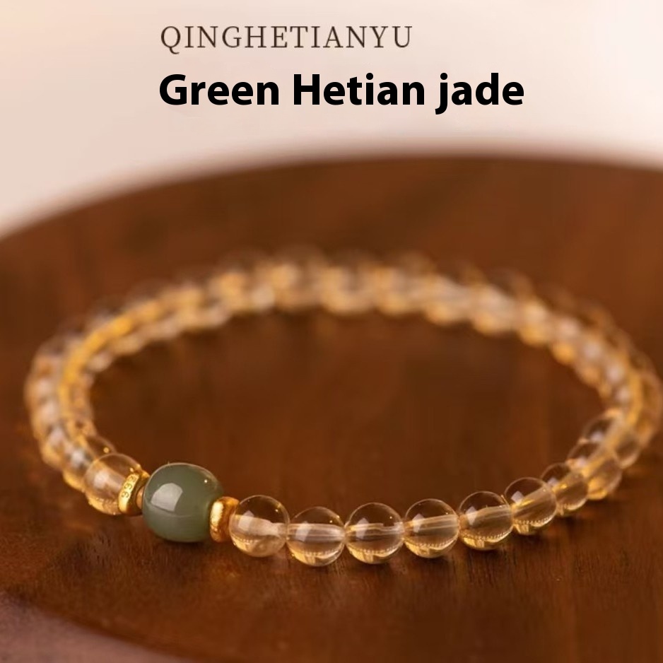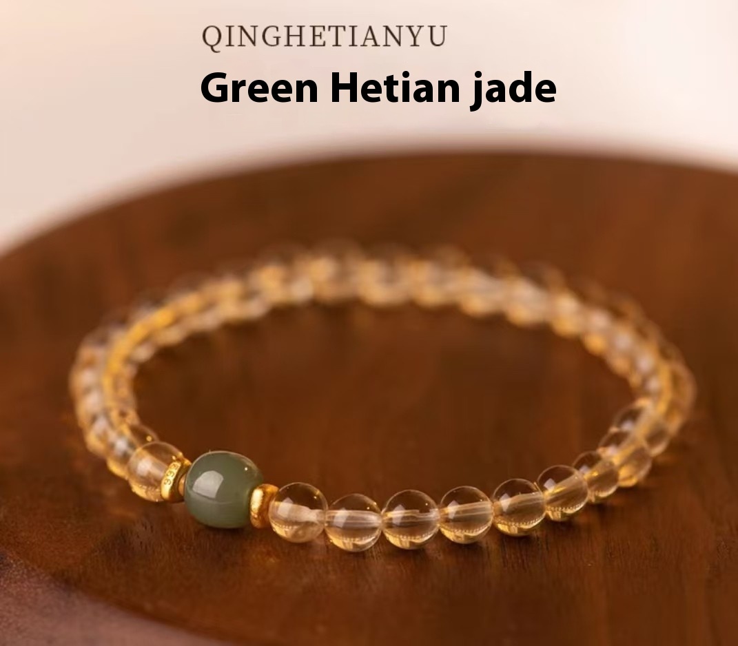Color: white hetian jade citrine 6mm, white hetian jade citrine 8mm, Green Hetian jade citrine 6mm, Green Hetian jade citrine 8mm