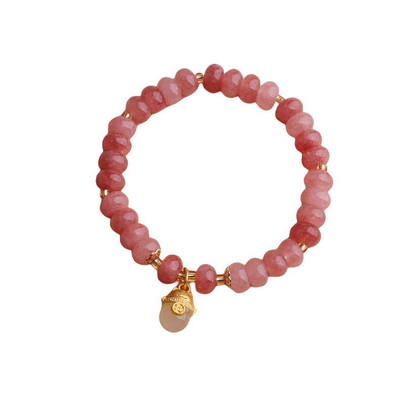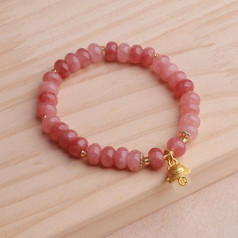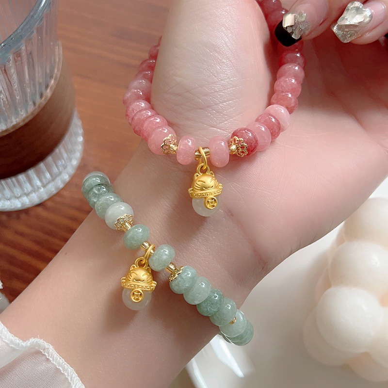 Color: Strawberry quartz lucky cat bracelet, gray Emerald lucky cat bracelet