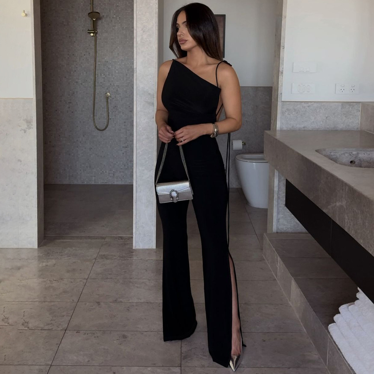 Female Fashionable With Side-slit Slim Fit Bodysuit