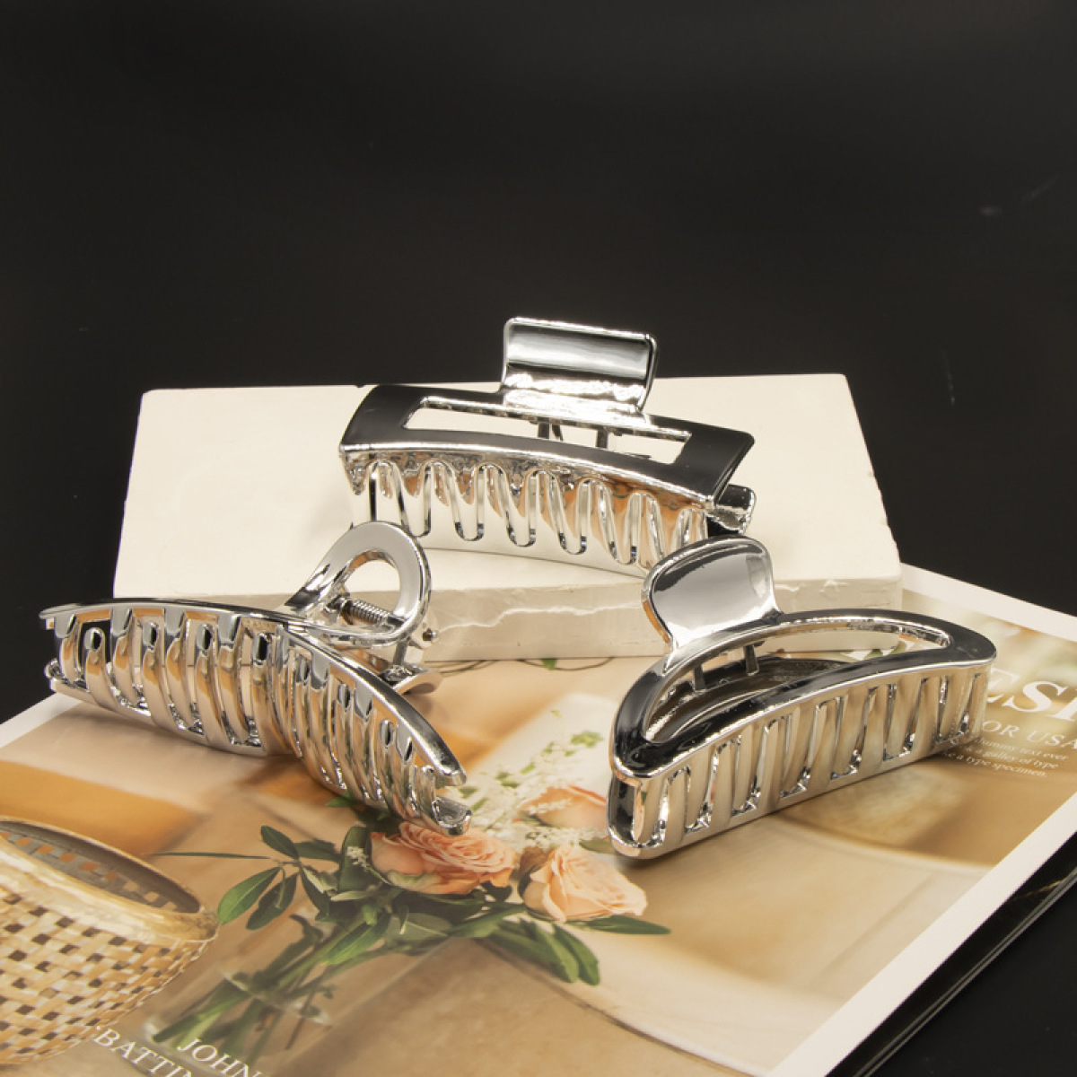 Size: Gold-plated-rectangular gripper 8.5CM, gold-plated-semicircle gripper 9CM, gold-plated-cross gripper 11CM, silver-plated-rectangular gripper 8.5CM, silver-plated-semi-circular gripper 9CM, silver-plated-cross Grab clip 11CM
