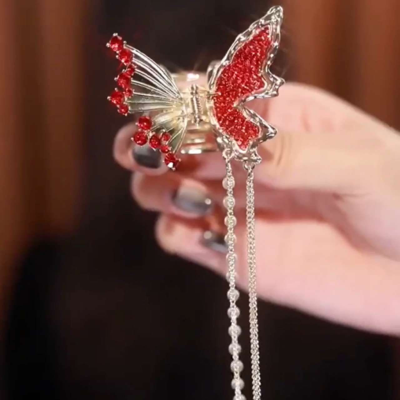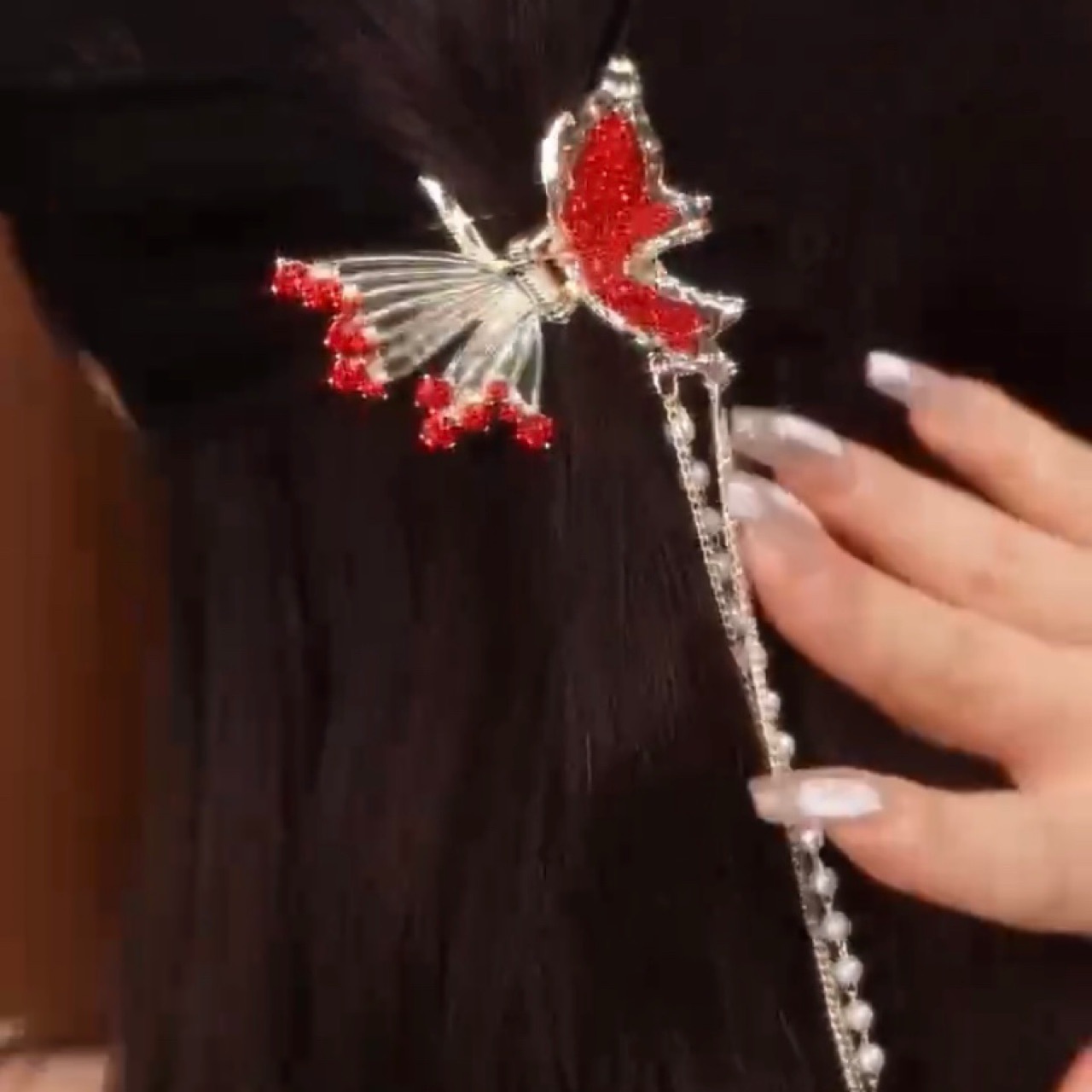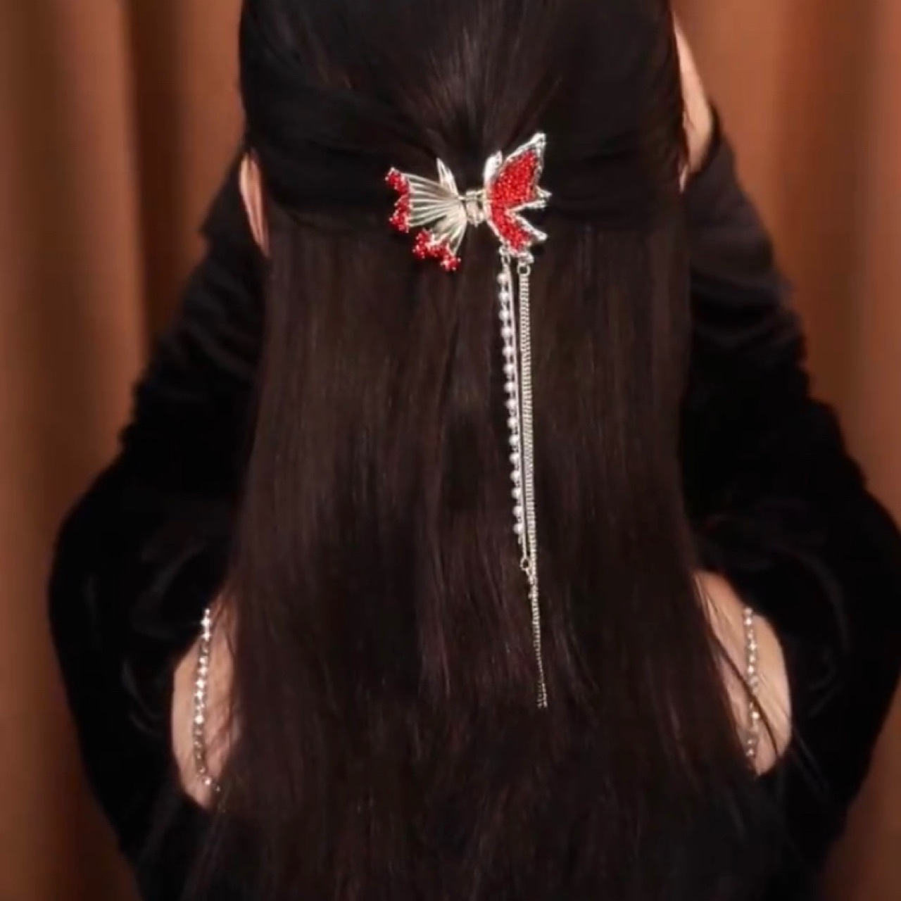 Product information :Material: alloyTreatment: electroplatingClassification of hair clips: grab clipsColor: redPacking list:Grip *1