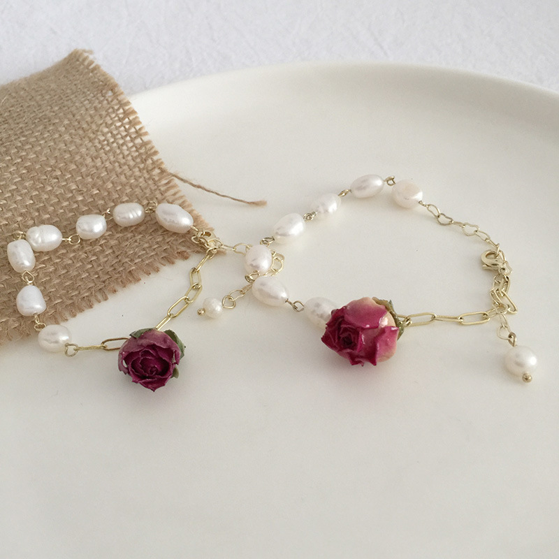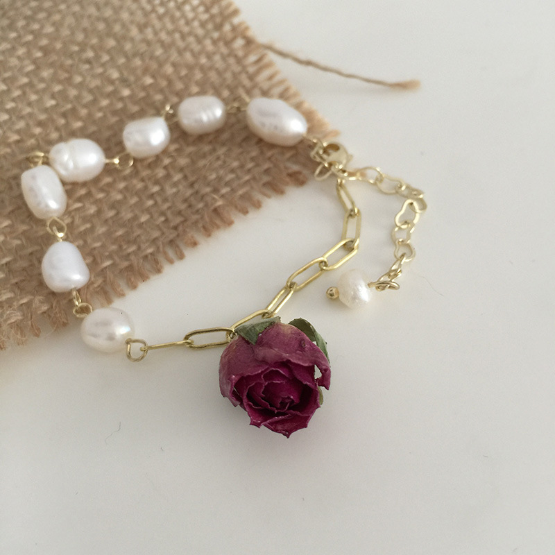 Color: Type A Natural Pearl Immortal Flower Bracelet with real gold plating, B Type Natural Pearl Immortal Flower Bracelet with real gold plating, main picture, BR21Y0349, BR21Y0350