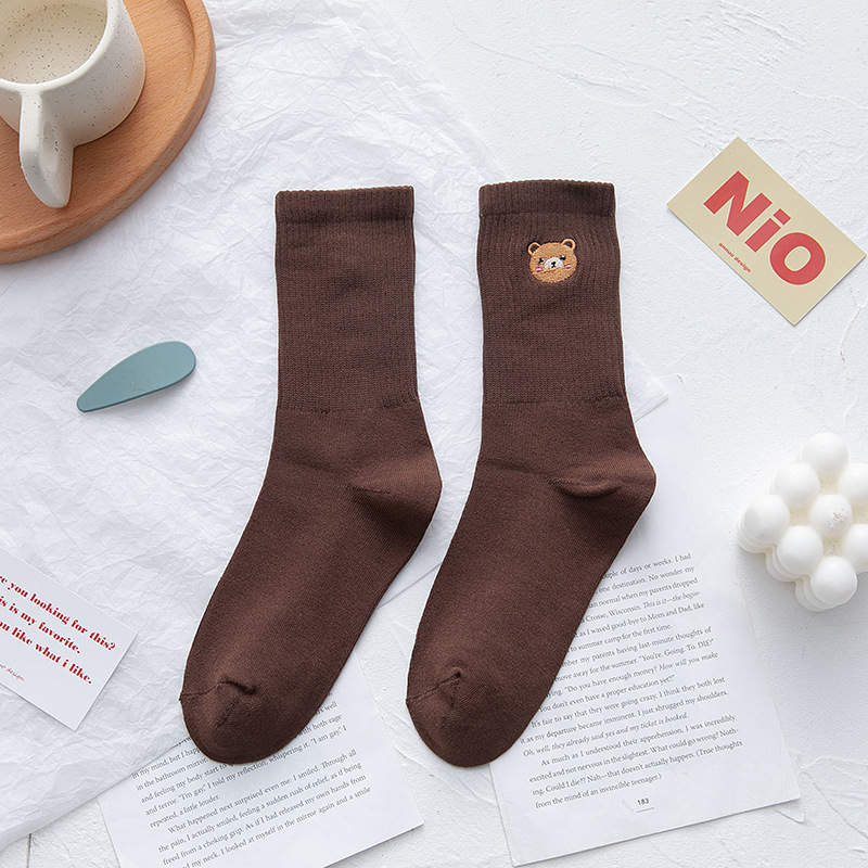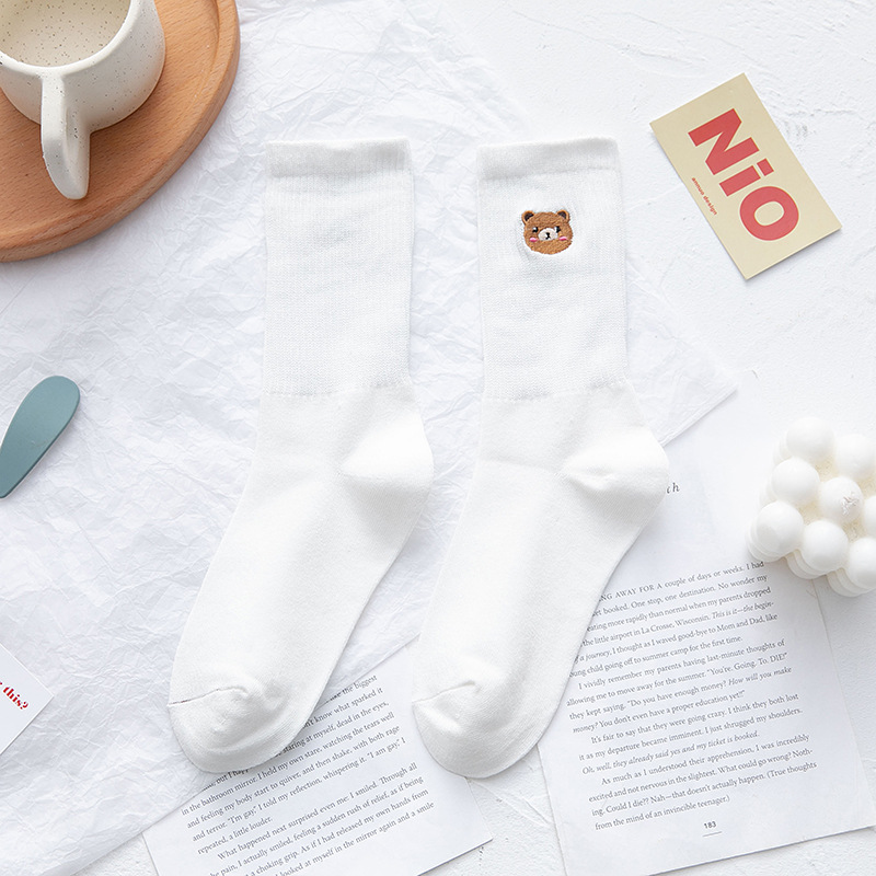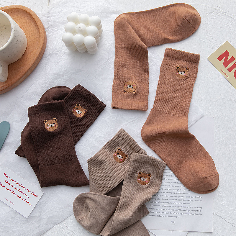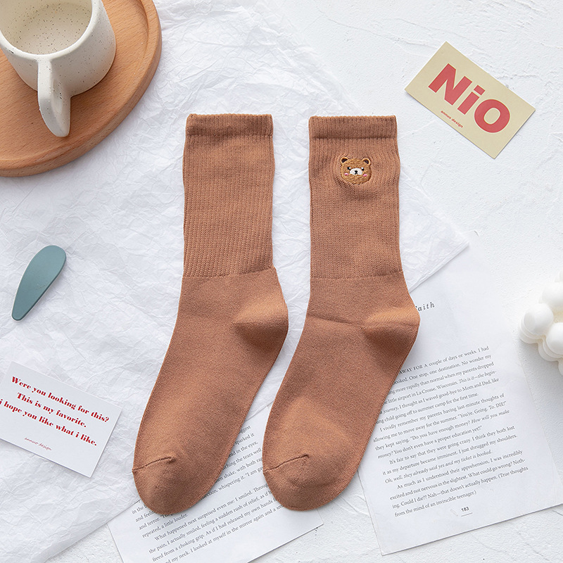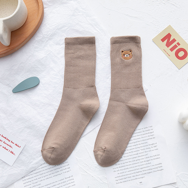 Female Japanese College Style Cute Cartoon Bear Embroidered Socks