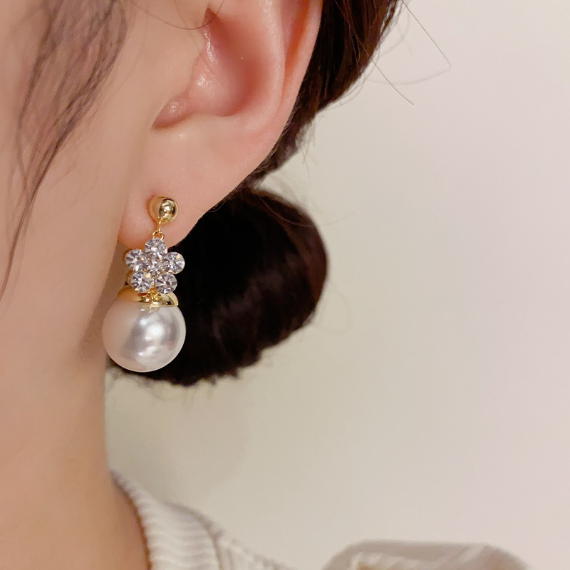 Female Korean Style Design Versatile Double-sided Flower Pearl Earrings