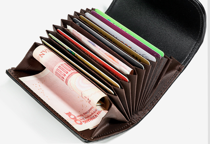 Internal structure: 9 card slots, 2 coin purses