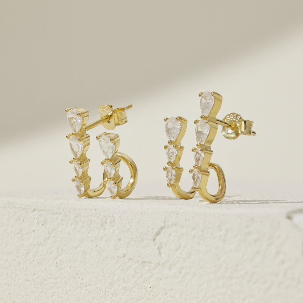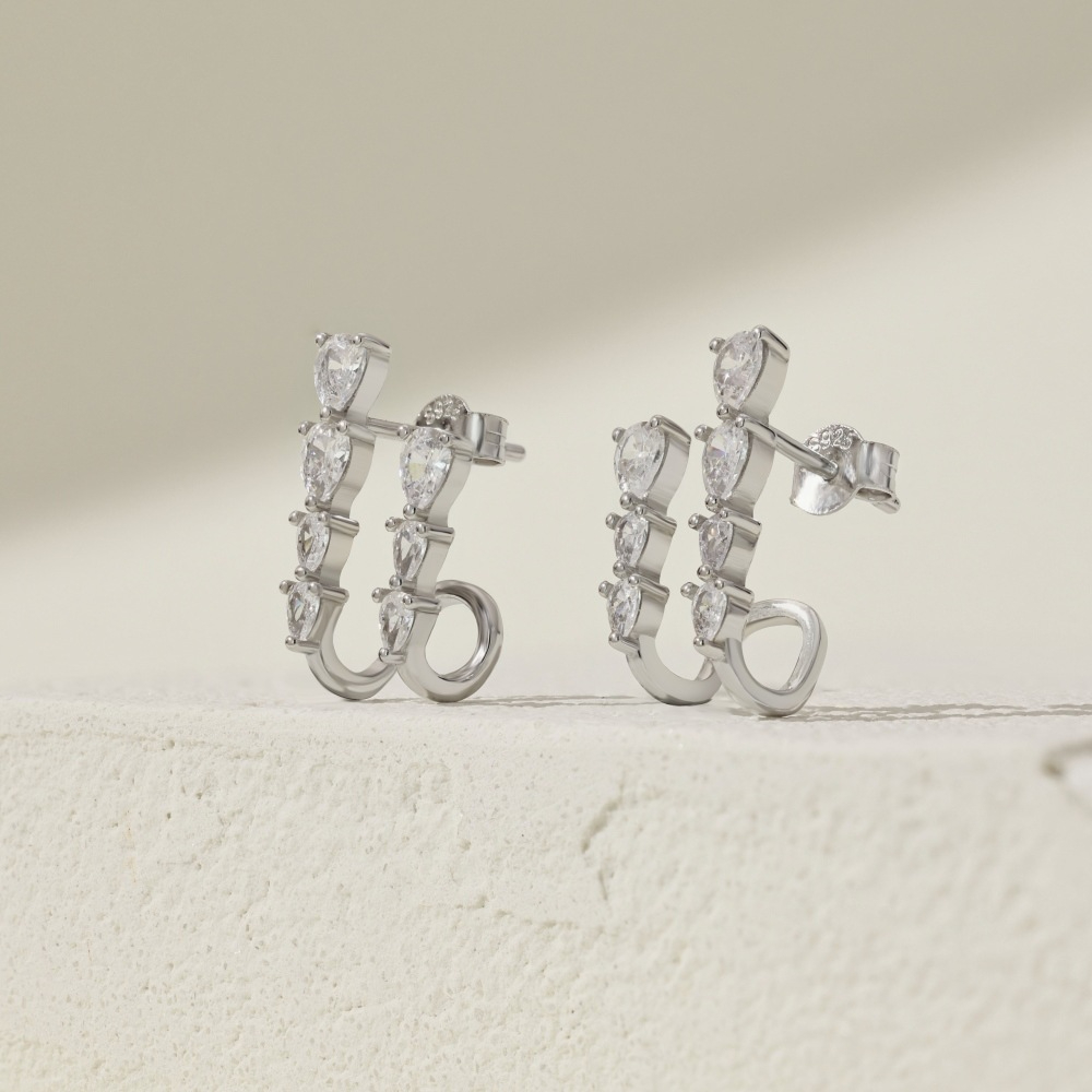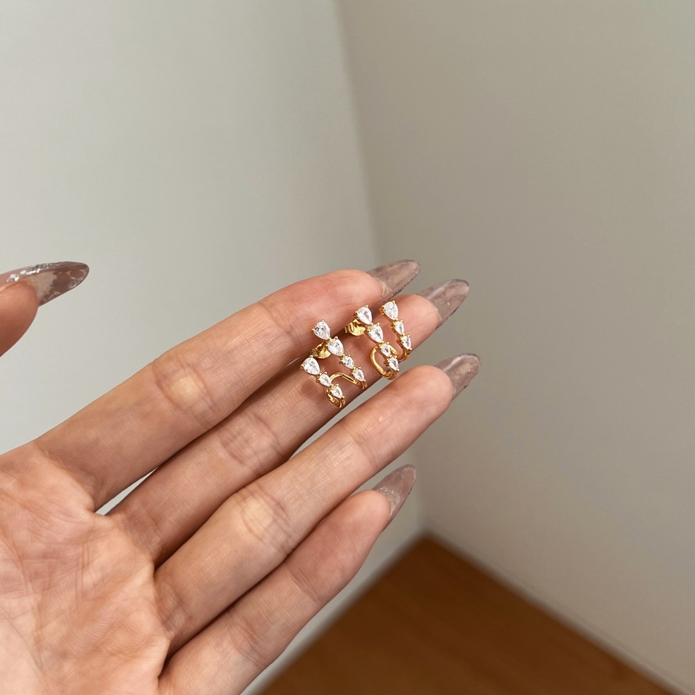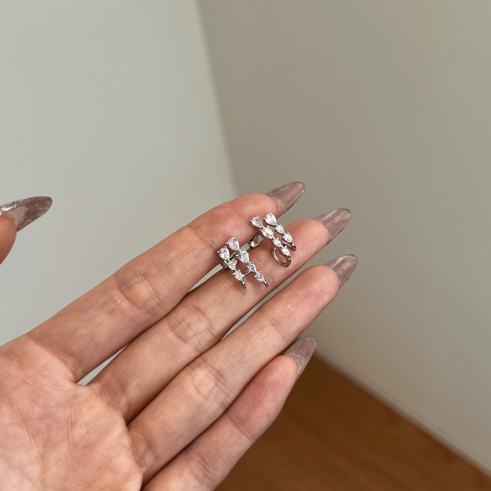 Female Pear-shaped Zircon Asymmetric Earrings