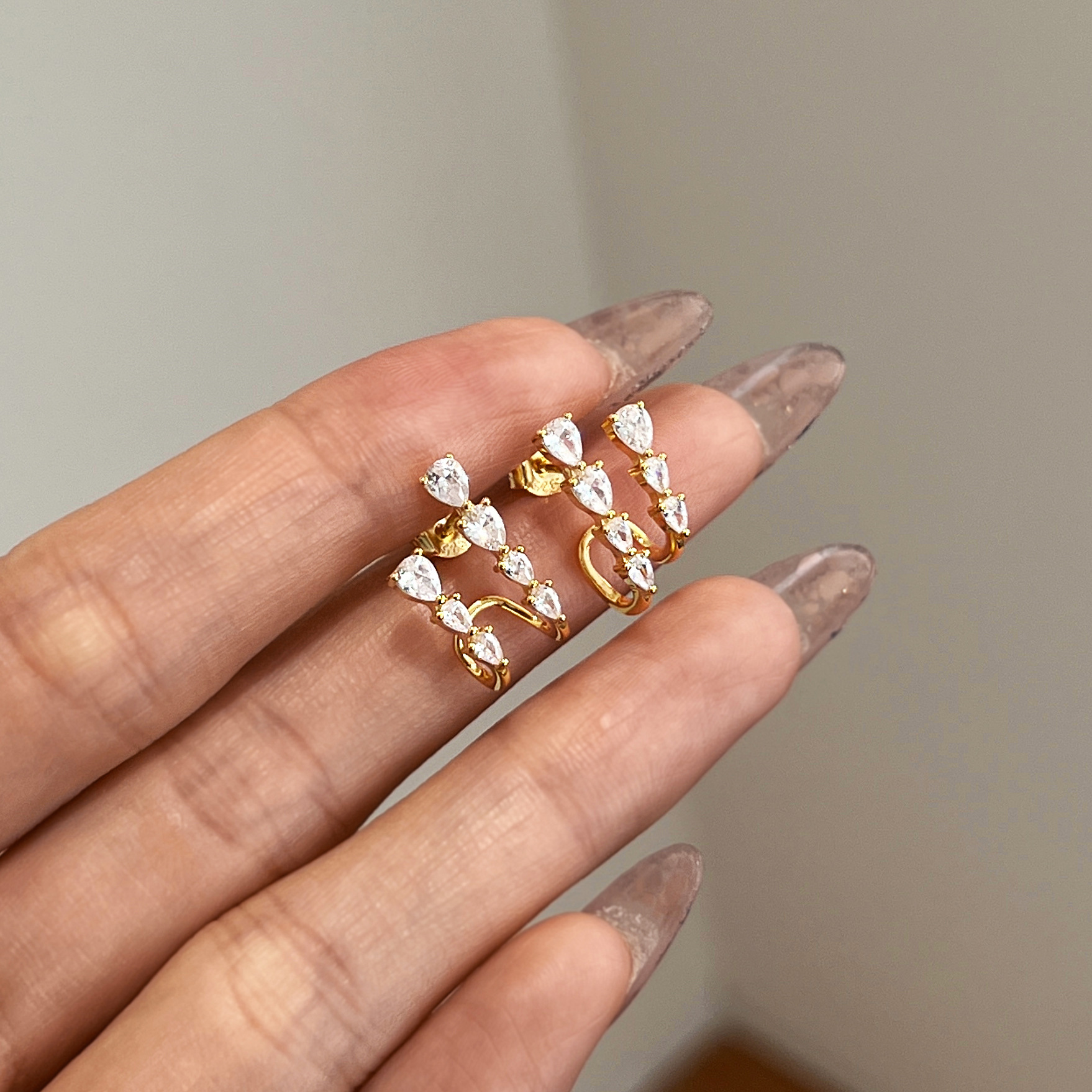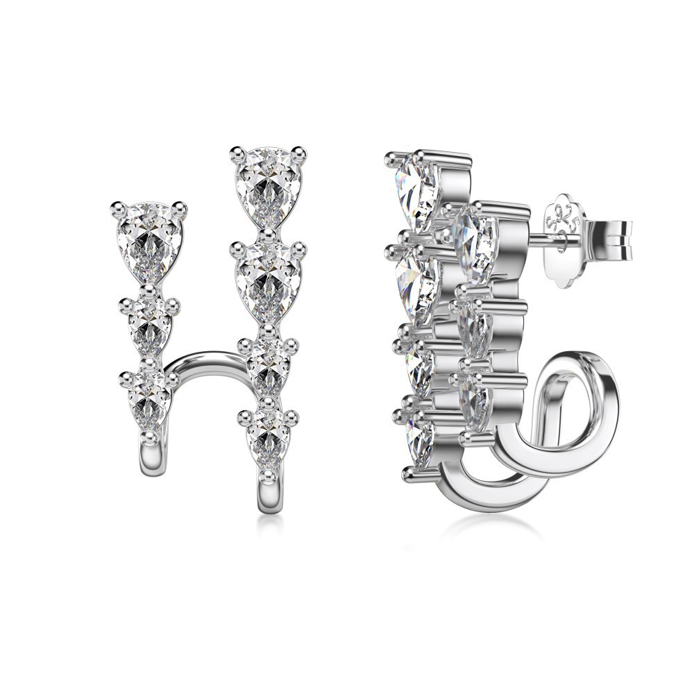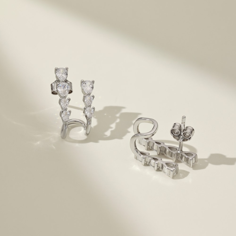 Female Pear-shaped Zircon Asymmetric Earrings