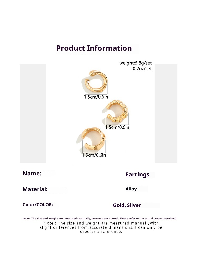 Color: ear clip gold three-piece set, ear clip silver three-piece set