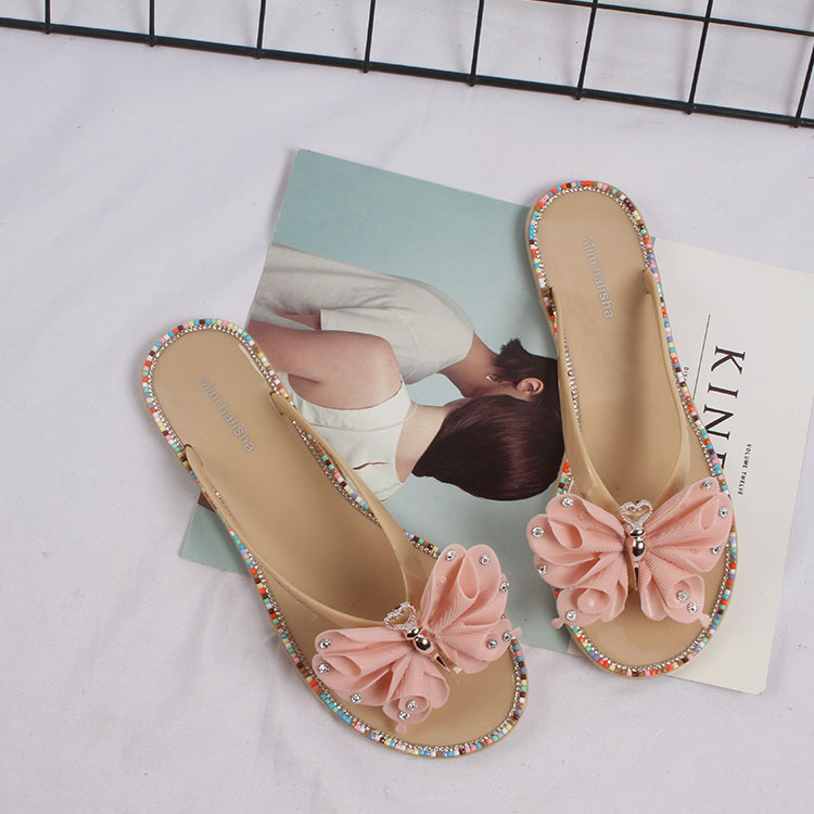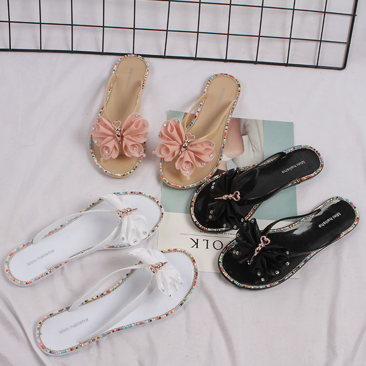 Color: 058-46 Fence Color Diamond-Plastic Diamond Butterfly Flip Flops-Black on Black, 058-46 Fence Color Diamond-Plastic Drill Butterfly Flip Flops-White on White, 058-46 Fence Color Diamond-Plastic Drill Butterfly flip flops-pink apricot background