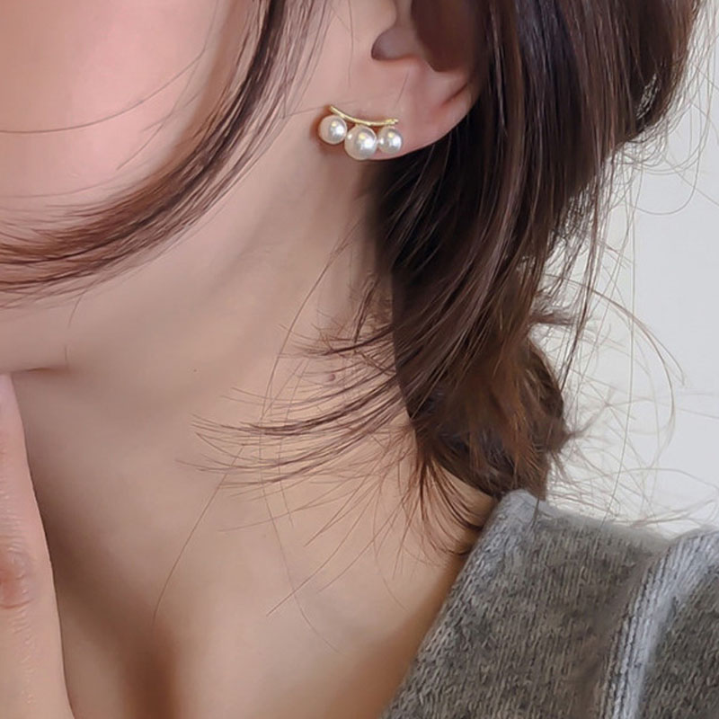 Color; Silver Needle Sweet Pearl Stud Earrings