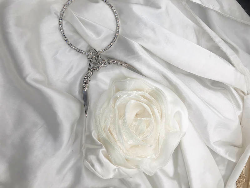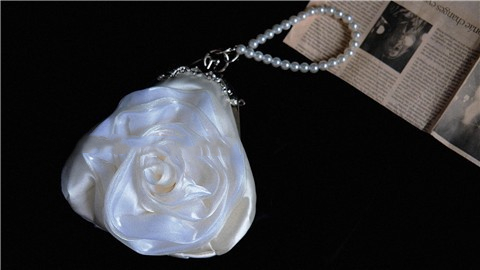 A: White mesh bag + 30cm pearl chain Beige flowers-with diagonal