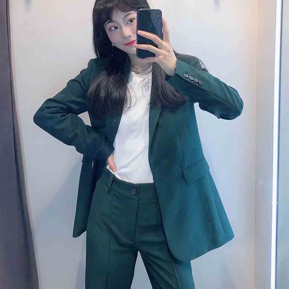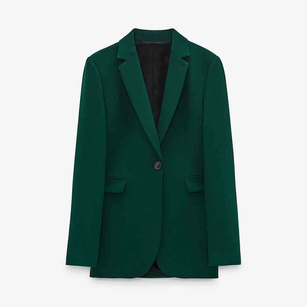Color: green suit, pink suit, camel suit, red suit, blue suit