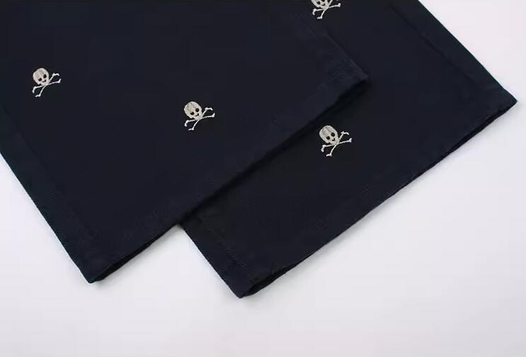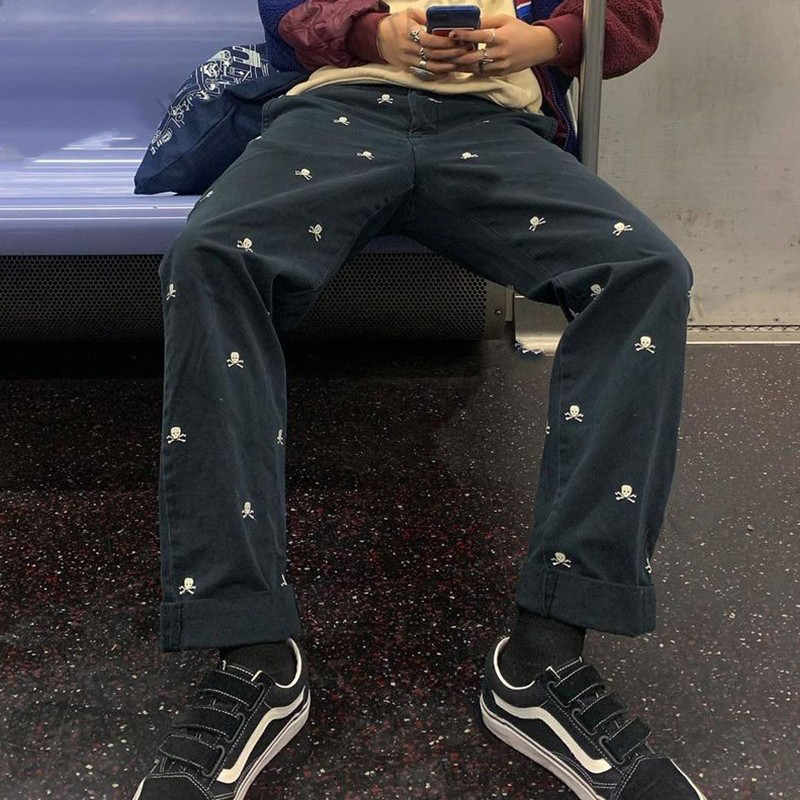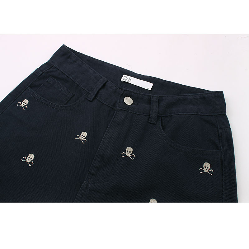 Female Tibetan Blue Skeleton Head Straight Tube Loose Relaxed Pants