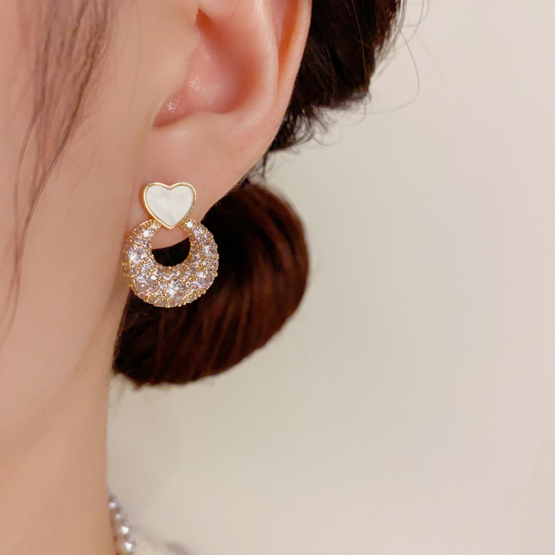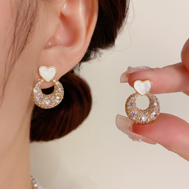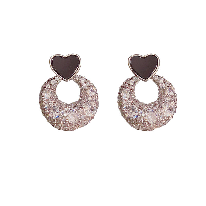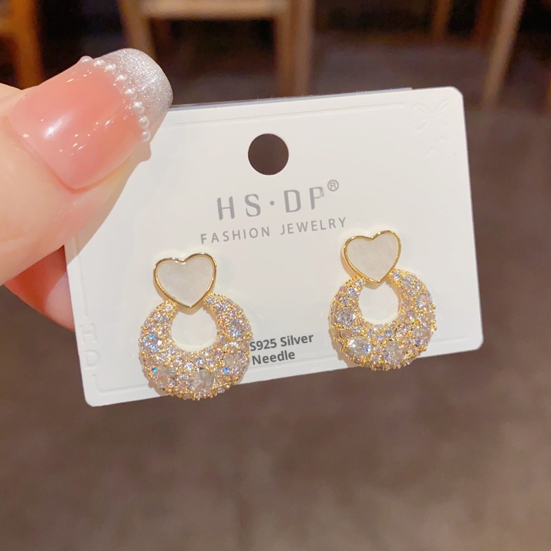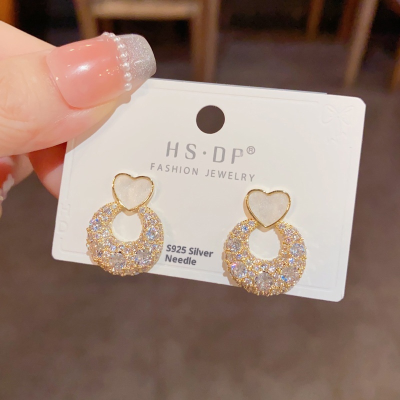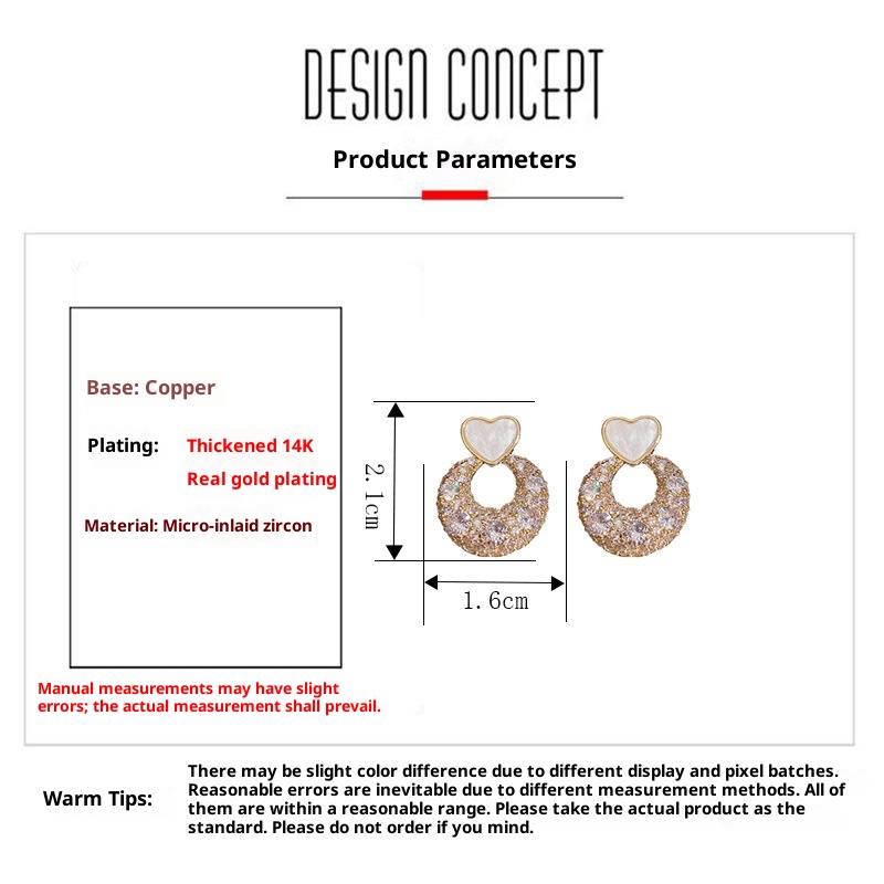 Color: Golden-love ring Zircon stud earrings (thick real gold plating), silver-love ring Zircon stud earrings (thick real gold plating)