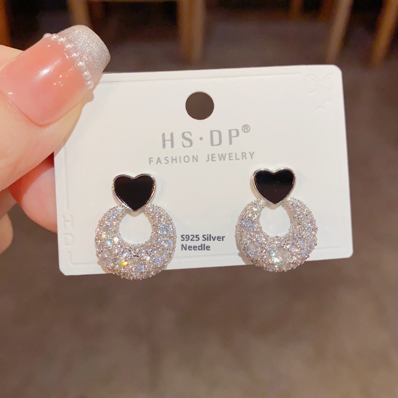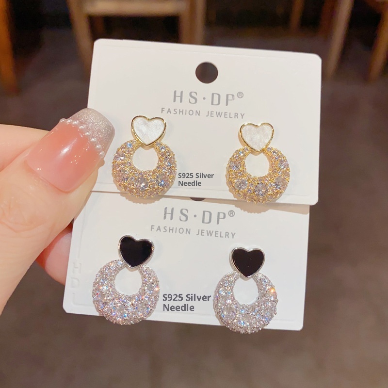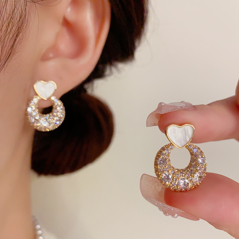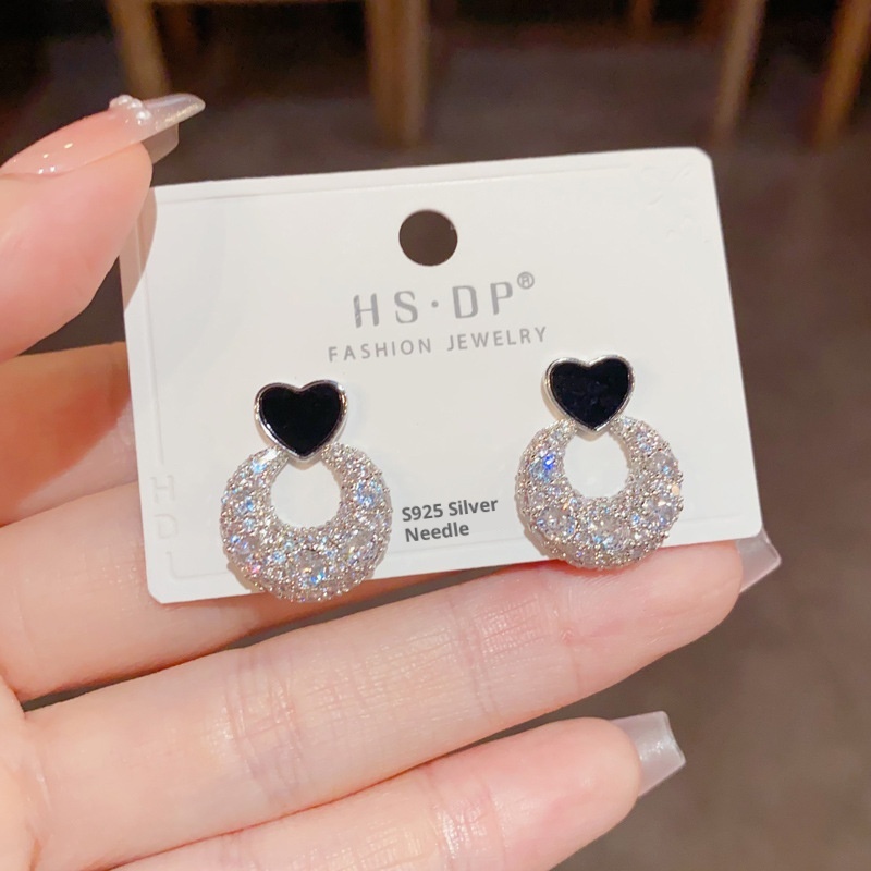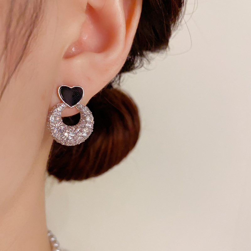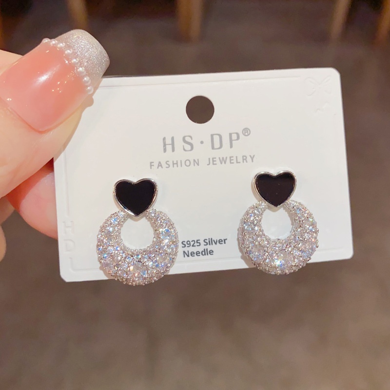 Color: Golden-love ring Zircon stud earrings (thick real gold plating), silver-love ring Zircon stud earrings (thick real gold plating)