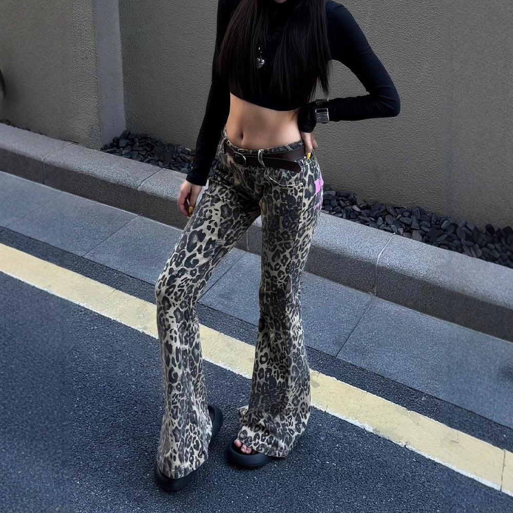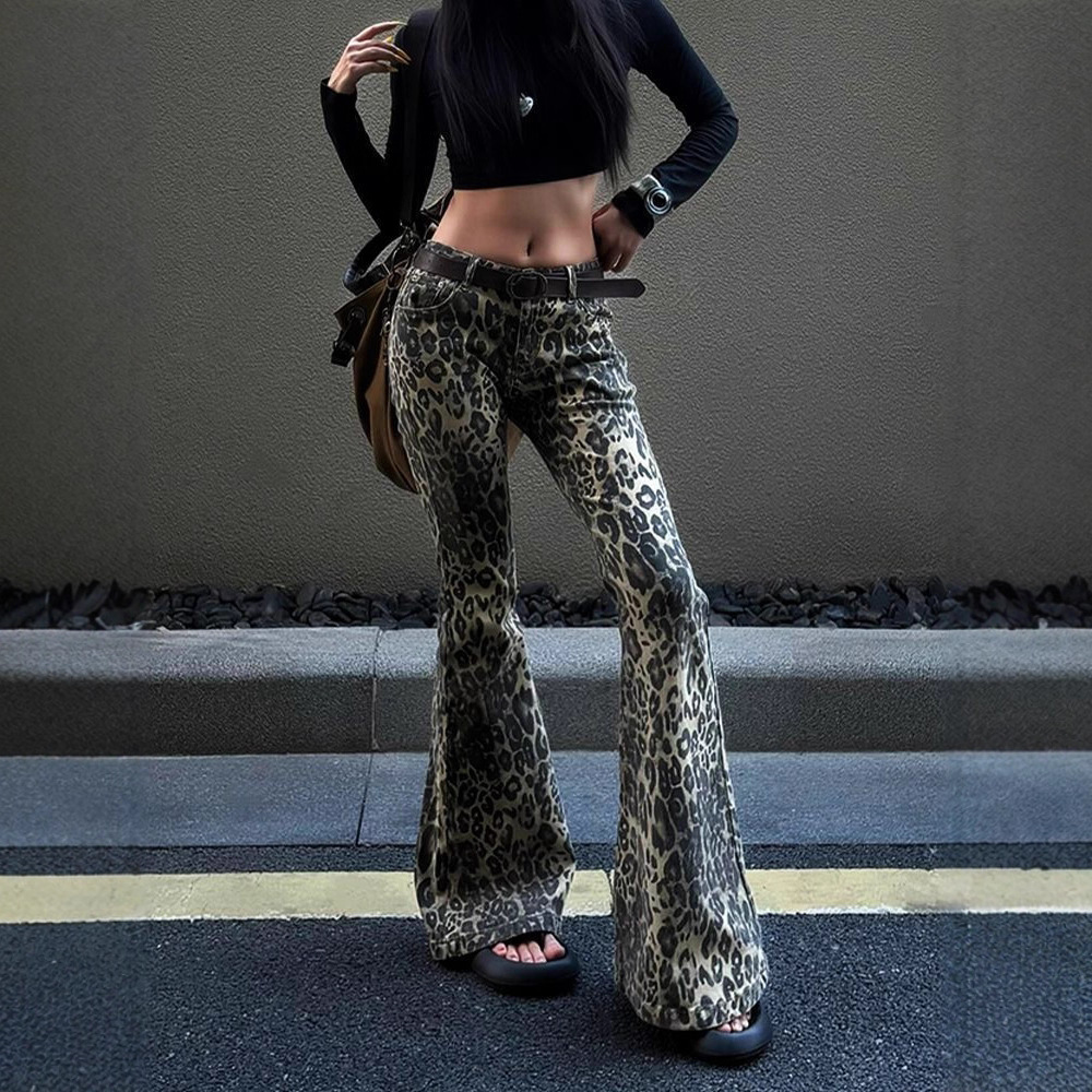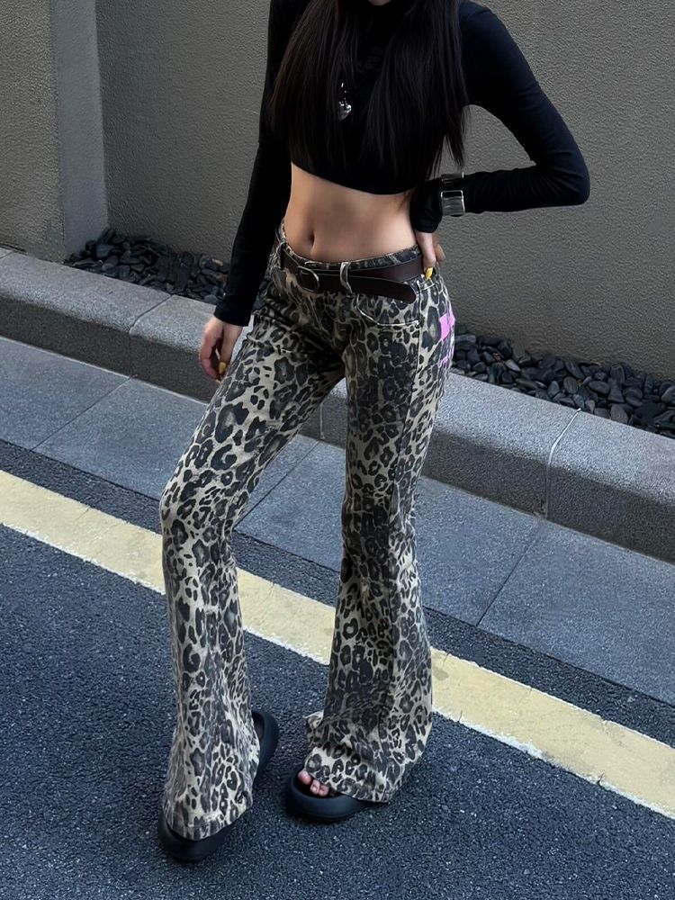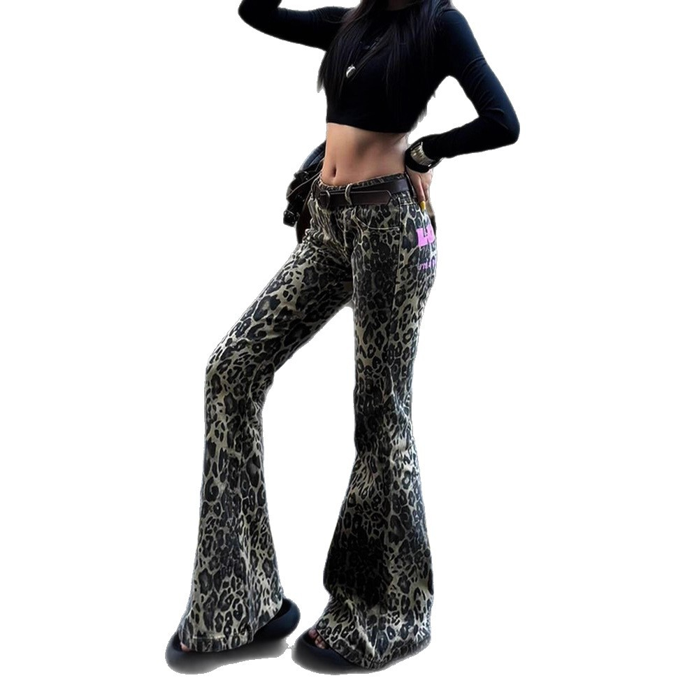 Female Versatile Printed Flared Floor-length Pants