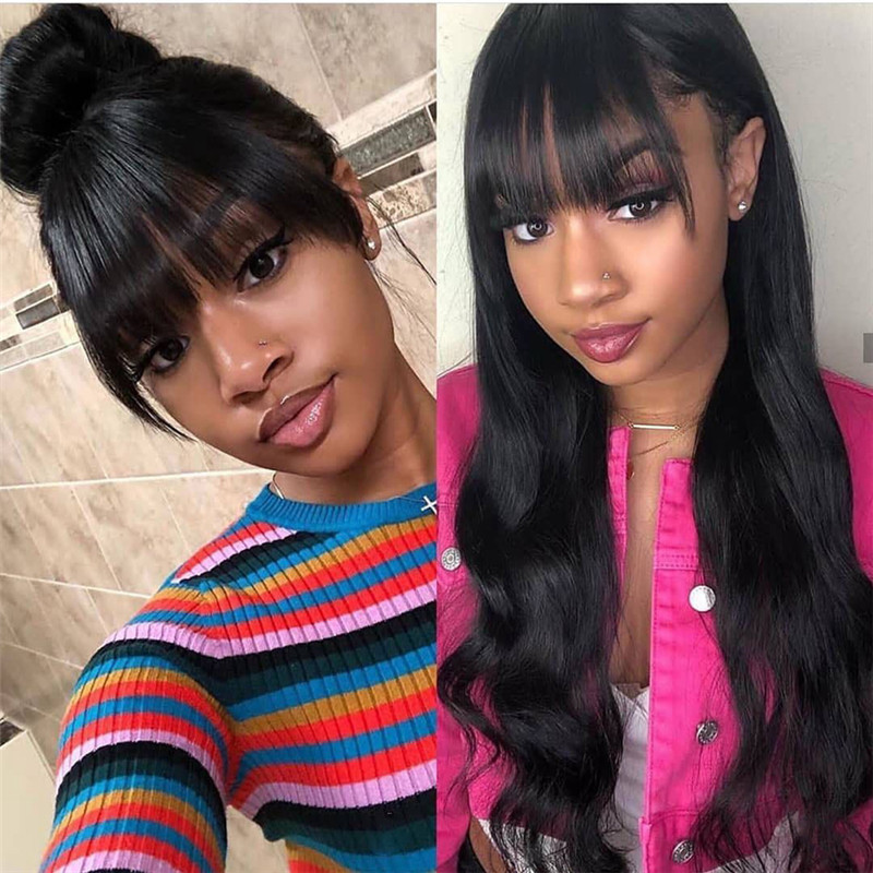Wig hairstyle: long curly hair with oblique bangs