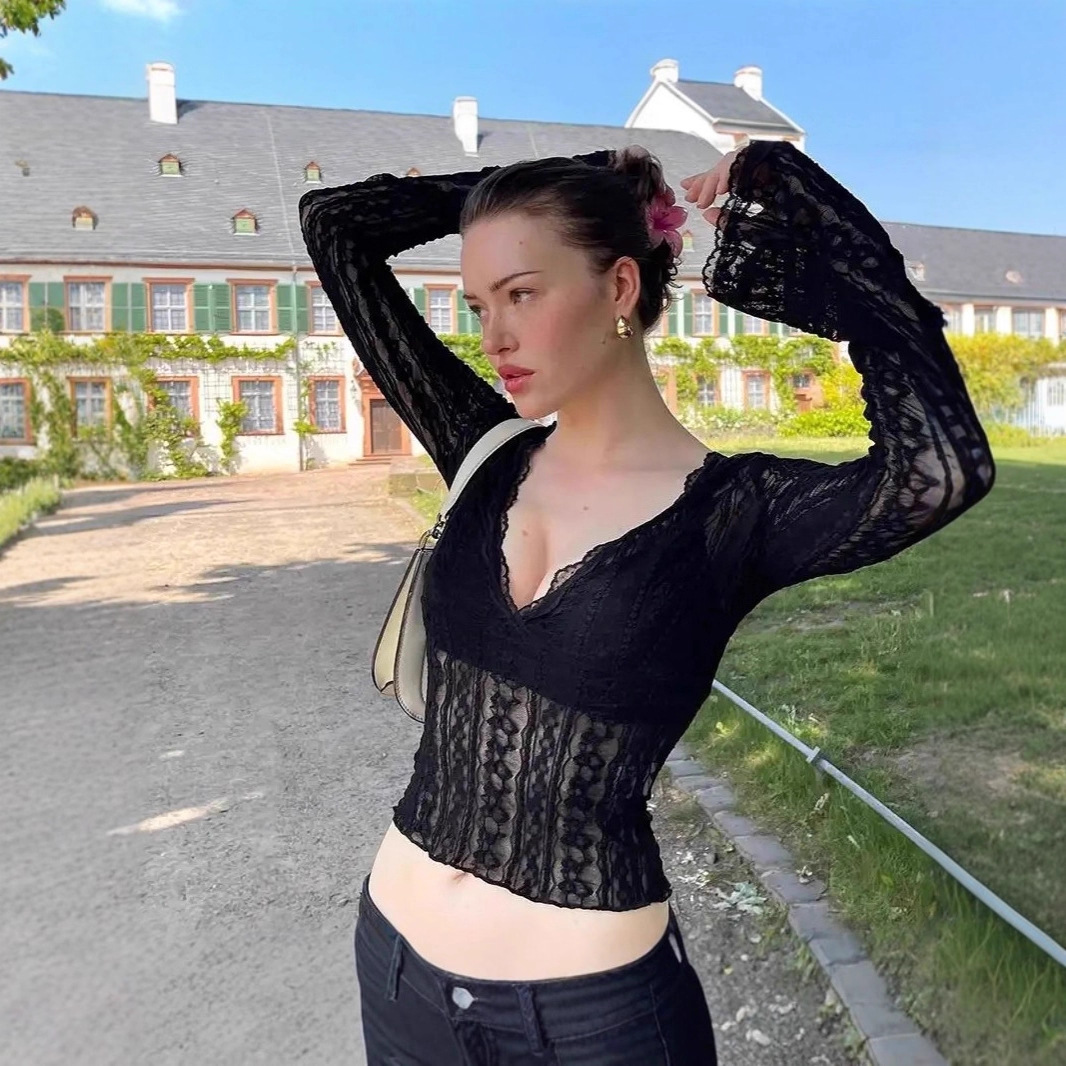 Popular elements: Lace, V-neck