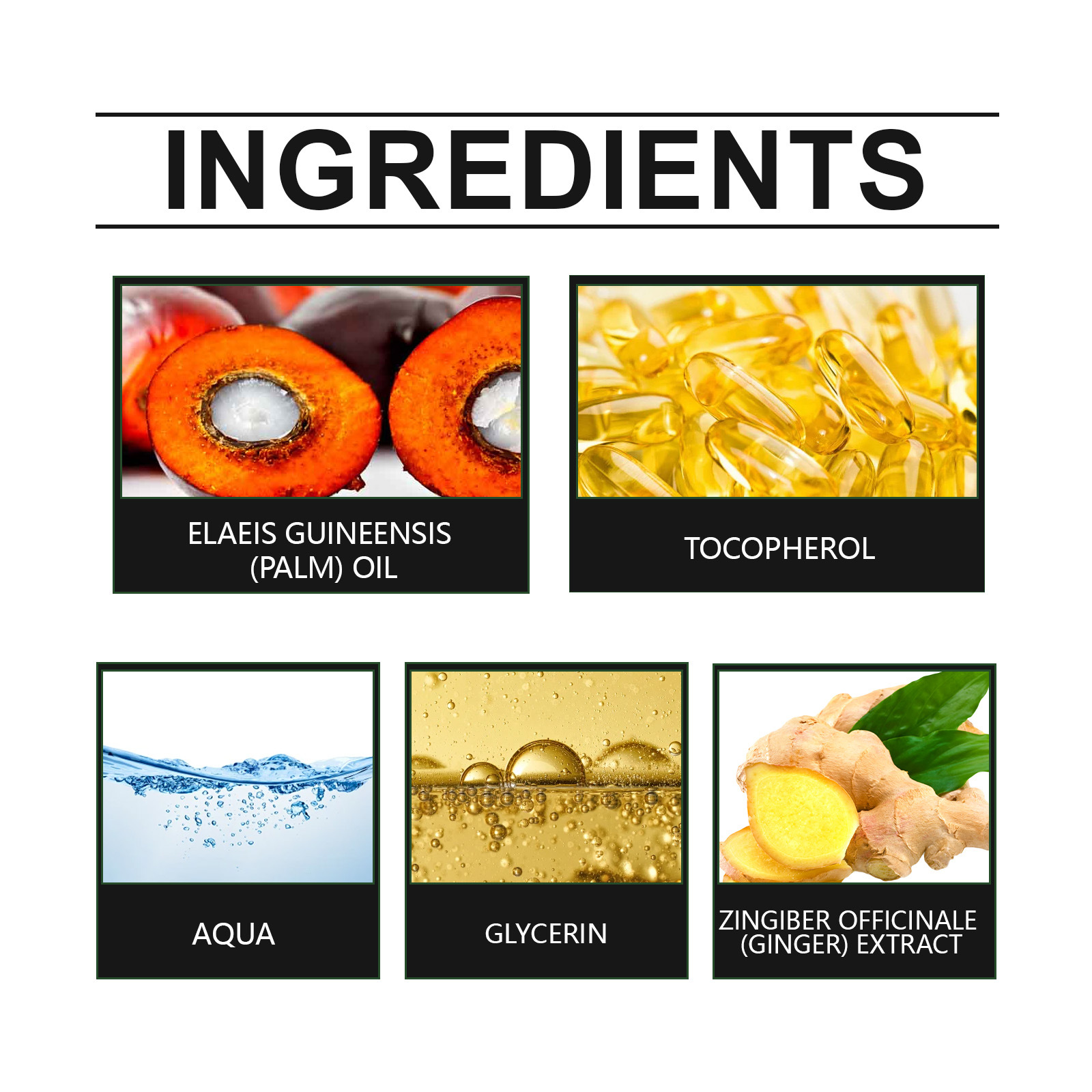 Ingredients: Water, Batana oil, tocopherol (vitamin E), glycerin, ginger extract