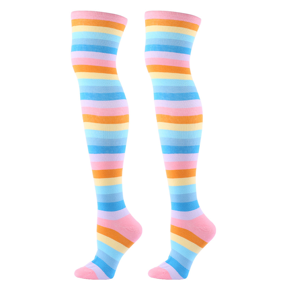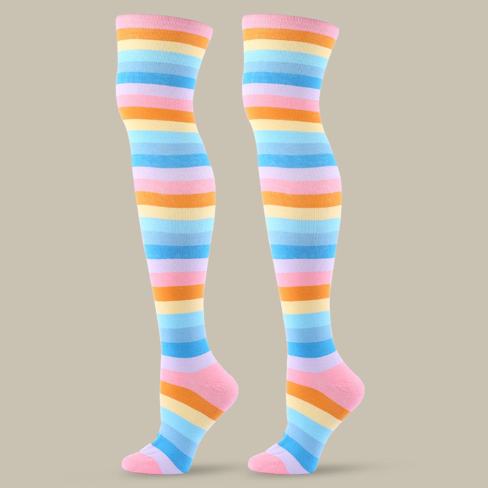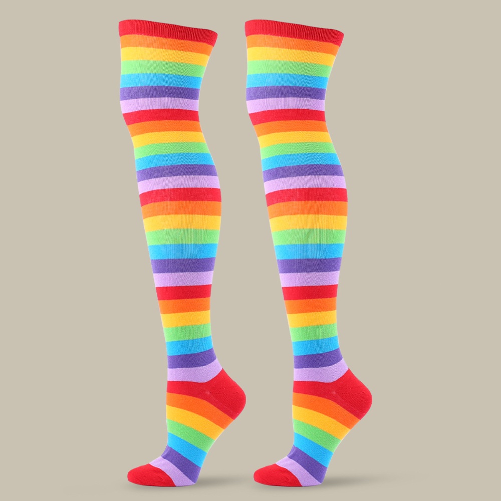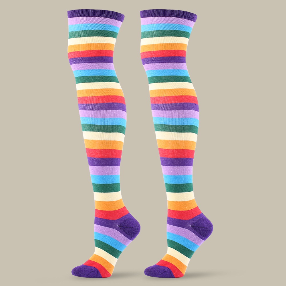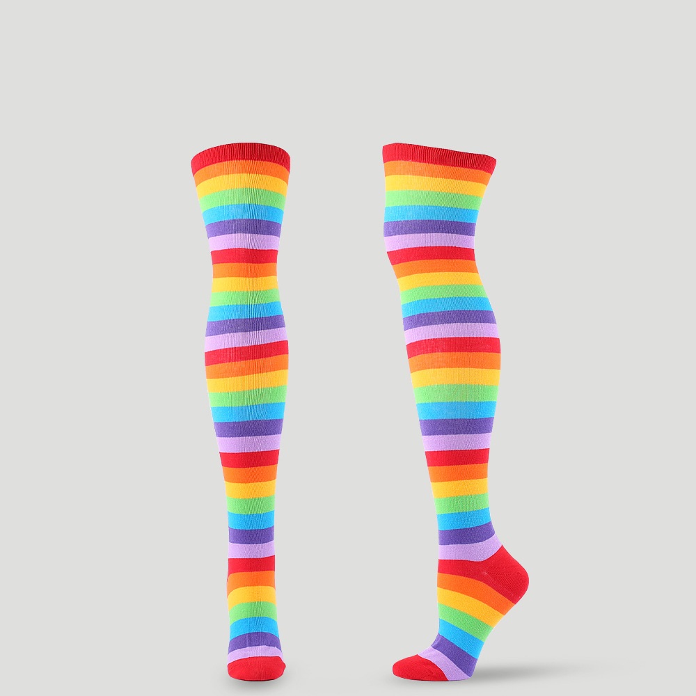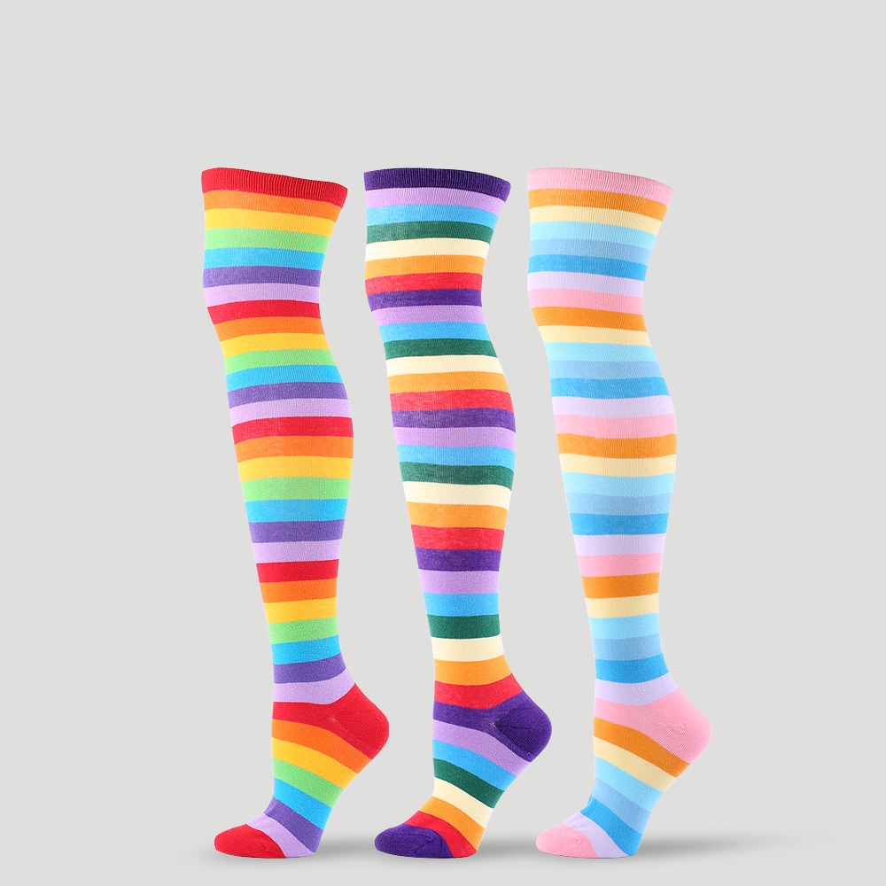 Color: red colorful striped socks, purple colorful striped socks, pink colorful striped socks