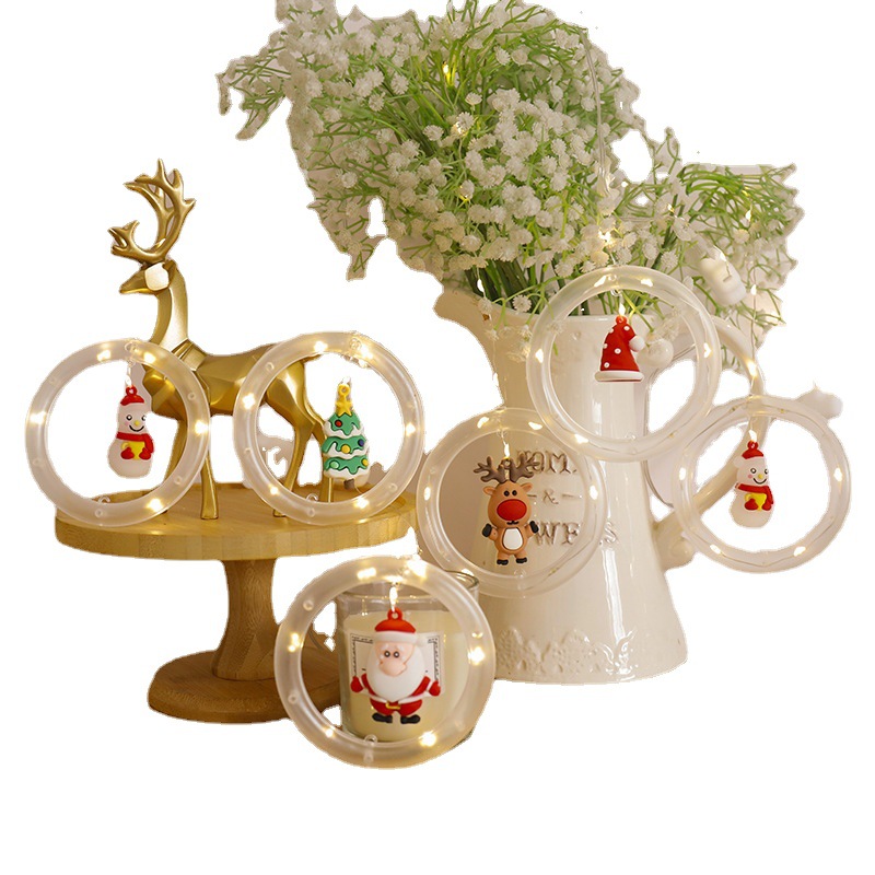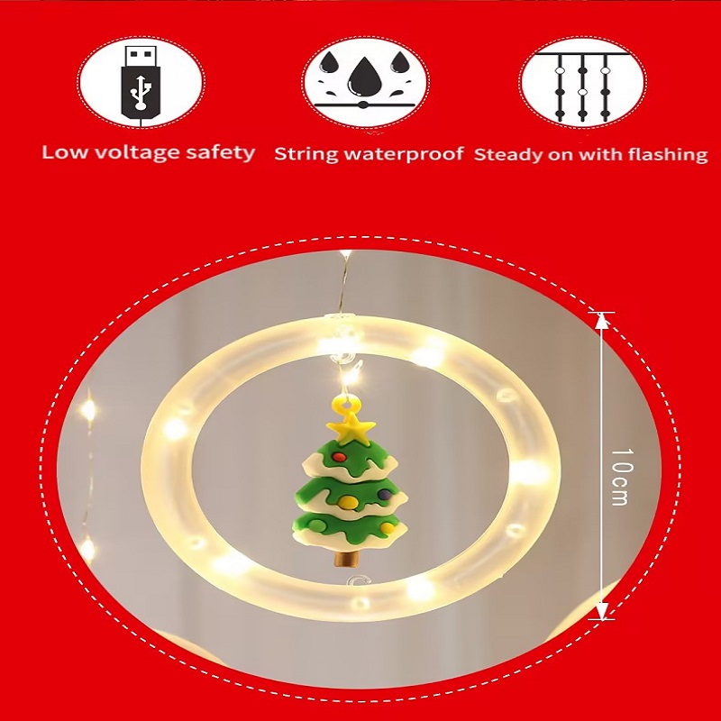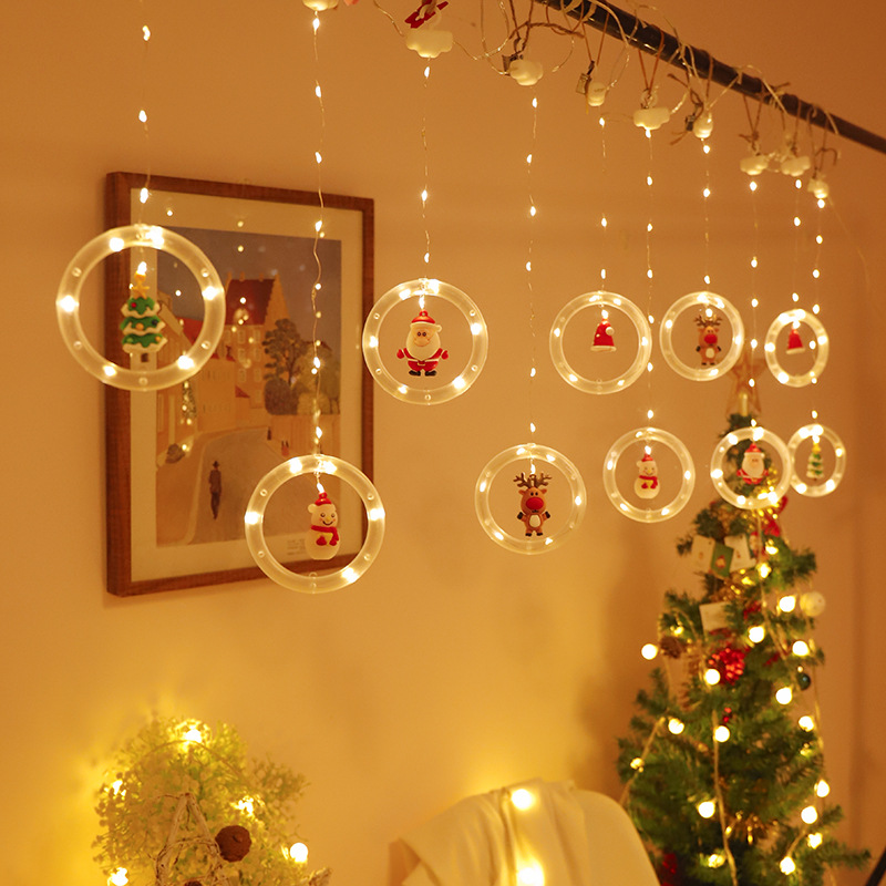 Festive DIY String Lights,Santa Claus Circle Christmas Tree Cartoon Shape Curtain Lights,LED Colorful Lights,Room Window Decoration Lights