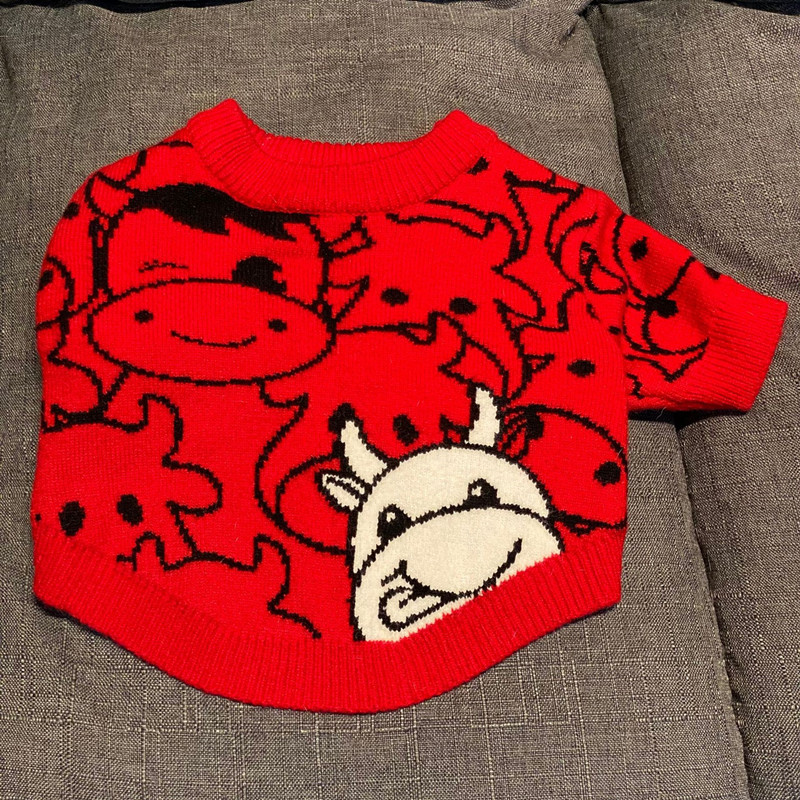 Color classification: a lot of cows, small red envelopes, small scarves, a lot of cows + a set of scarves