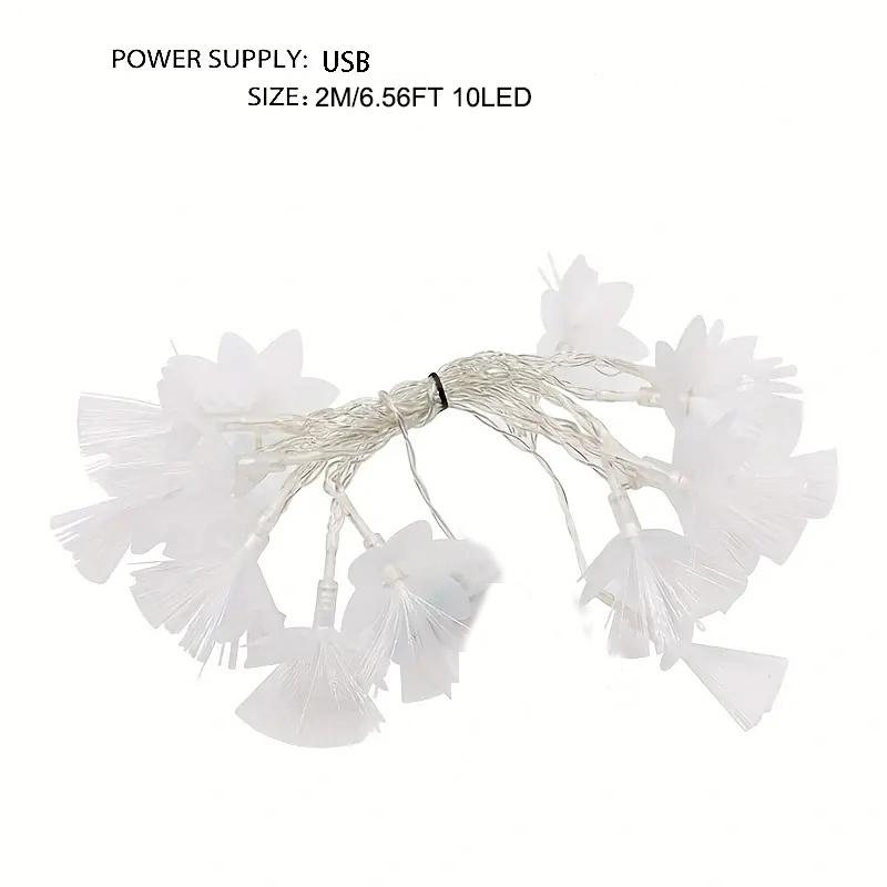 Our Fiber Optic LED Flower String Lights are designed with waterproof and dustproof features, making them perfect for balcony and garden decoration, and ideal small colored lights for creating a festive atmosphere.Crafted with high-quality fiber optic materials and LED bulbs, the string lights emit soft and bright light, presenting delicate flower shapes that add a romantic and warm touch to any space.