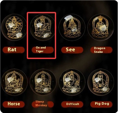 Purity: Rat Thousand-Hand Kwan-yin, cow/Tiger deficiency Zang Bodhisattva, rabbit Manshu Bodhisattva, Dragon/snake Pu fairy Bodhisattva, China Chinese zodiac horse Mahasthamaprapta, sheep/monkey Big Sky, chicken aryaacalanatha, pig/dog Amitabha Buddha