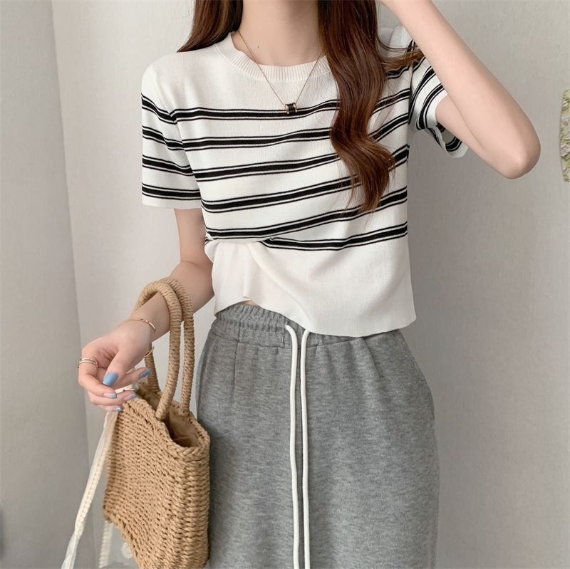 Figure-flattering Slimming French-style Short-sleeve Top