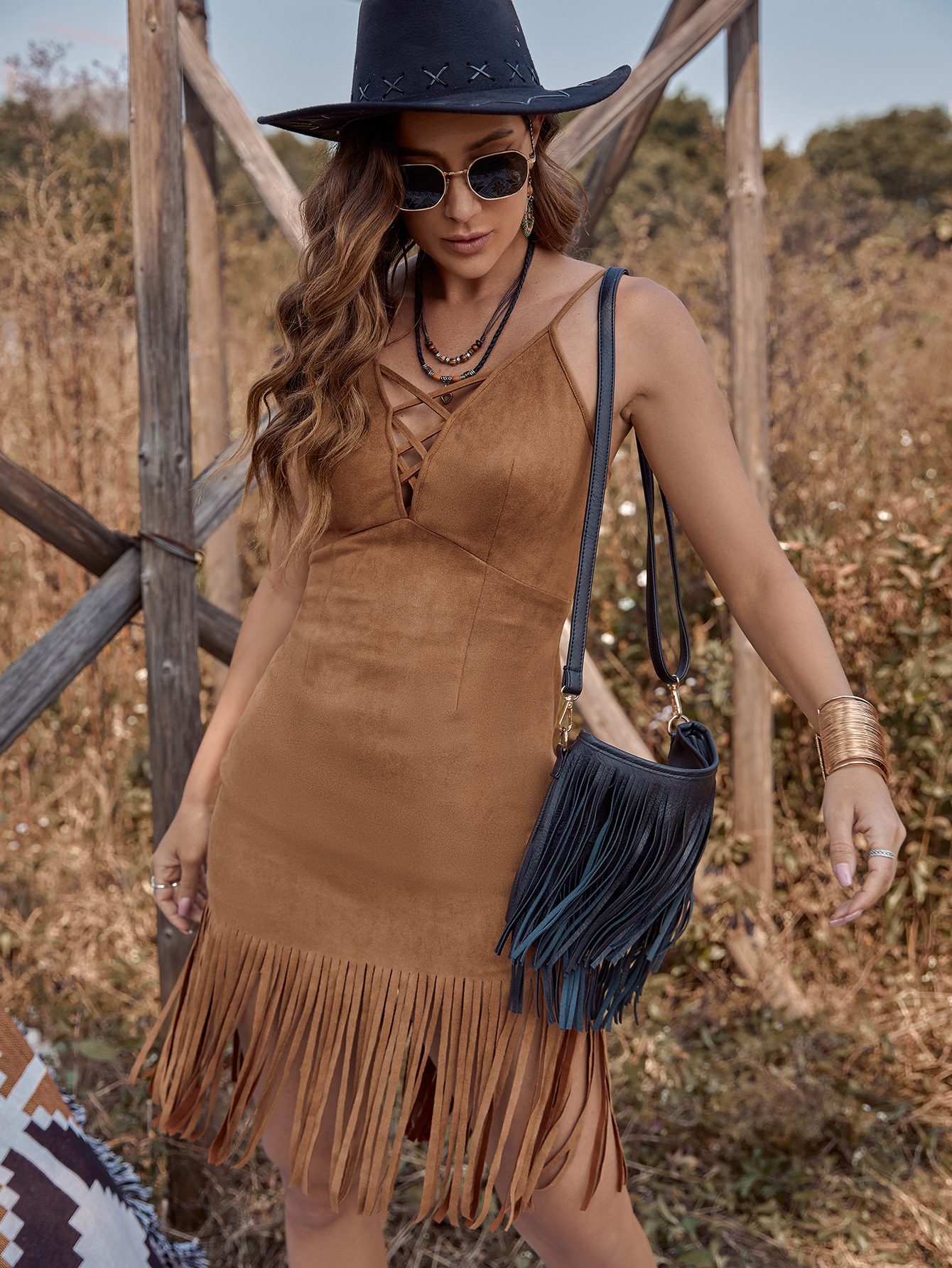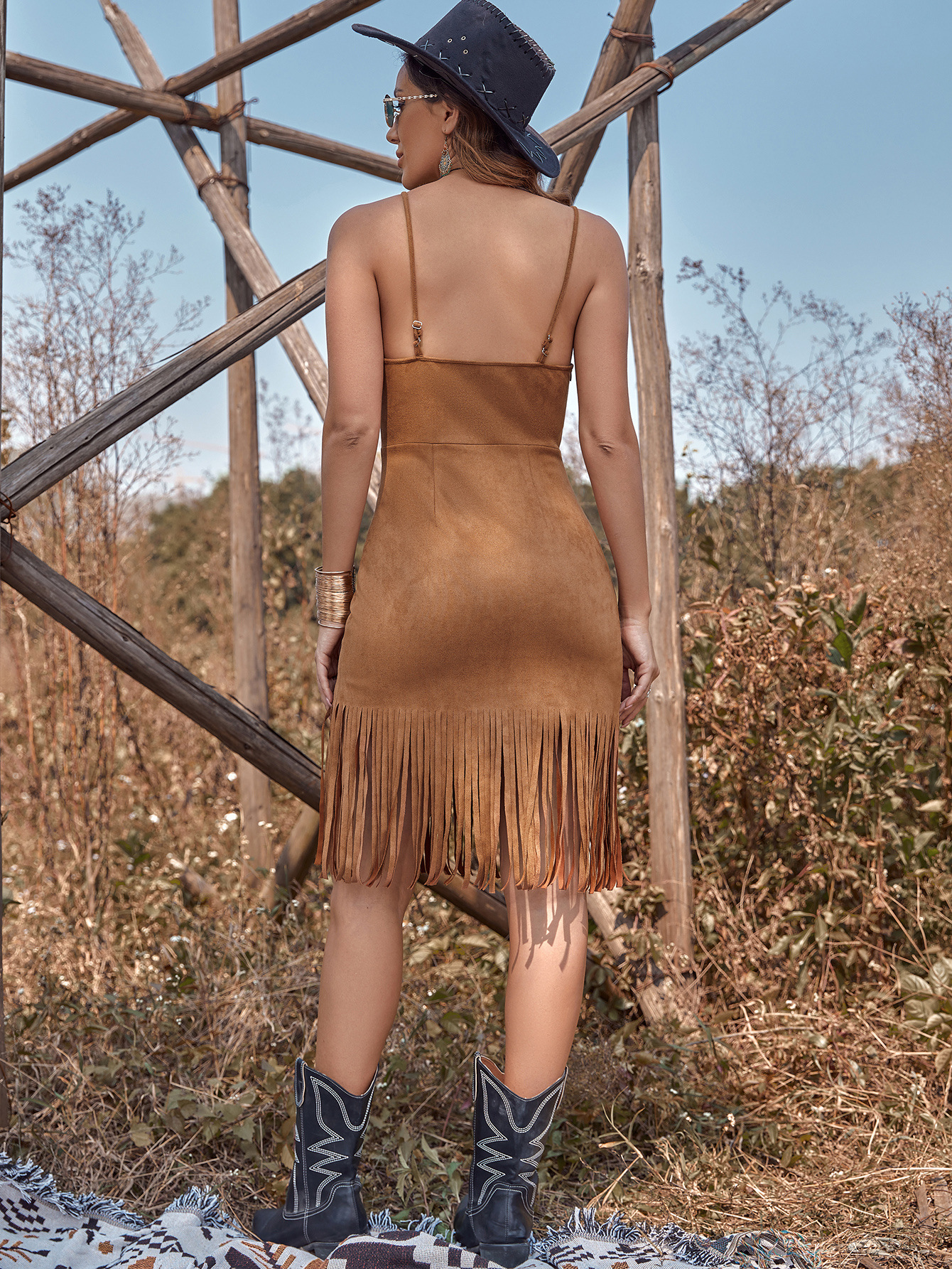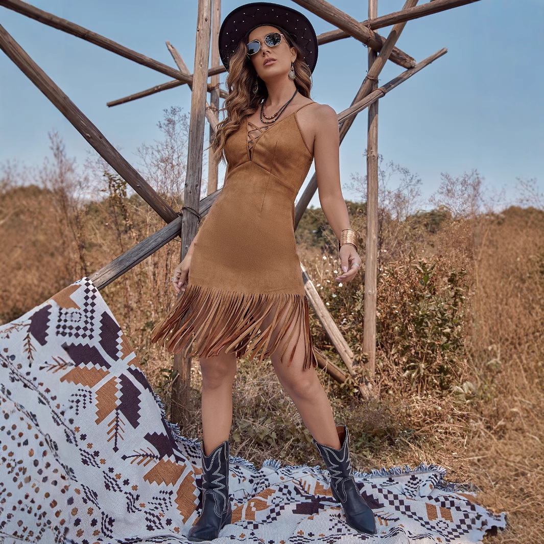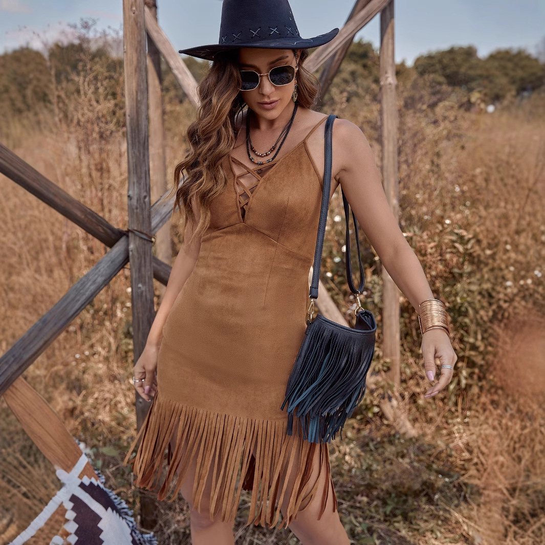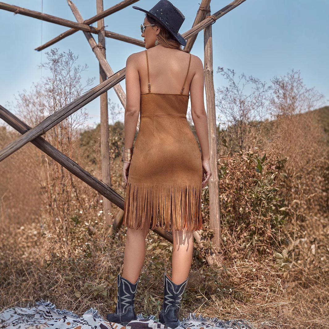 Figure-hugging Dress With Strappy Design And Fringed Details