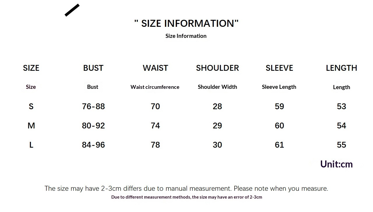 1. Asian sizes are 1 to 2 sizes smaller than European and American people. Choose the larger size if your size between two sizes. Please allow 2-3cm differences due to manual measurement. 2. Please check the size chart carefully before you buy the item, if you don't know how to choose size, please contact our customer service. 3.As you know, the different computers display colors differently, the color of the actual item may vary slightly from the following images.