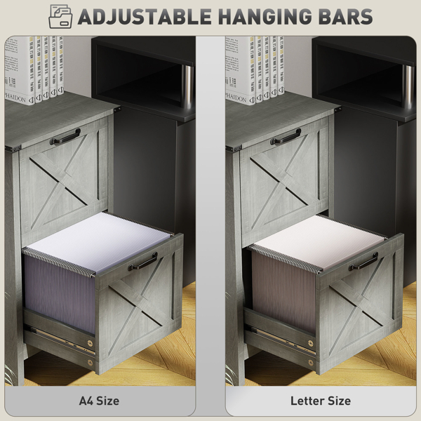 • - Two drawers with adjustable bars for A4 or letter file sizes