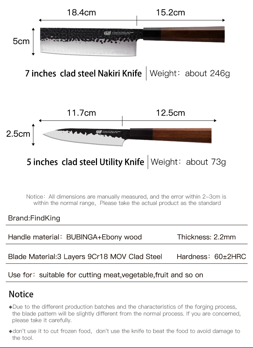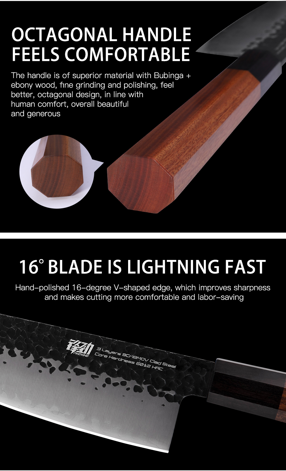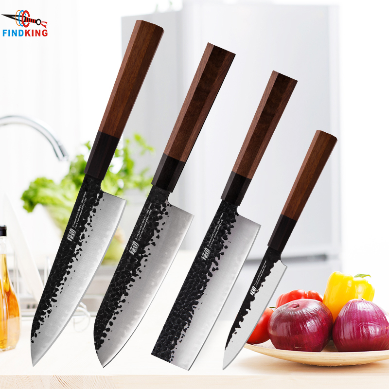 FINDKING 4 pièces en acier plaqué japonais professionnel octogonal poignée couteau de cuisine Nakiri Santoku couteaux utilitaires