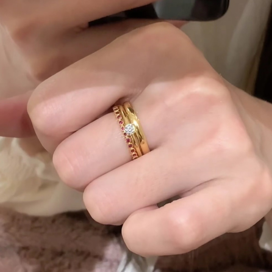 Fine Red Diamond Dot Diamond Plain Ring Gold Ring
