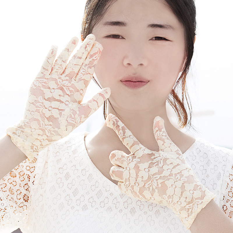 Material: VelvetUse classification: clothing glovesApplicable gender: femaleProcessing method: JacquardFunction: sun protection