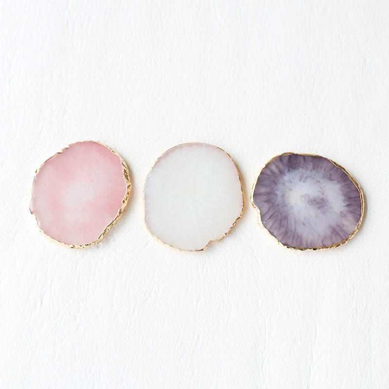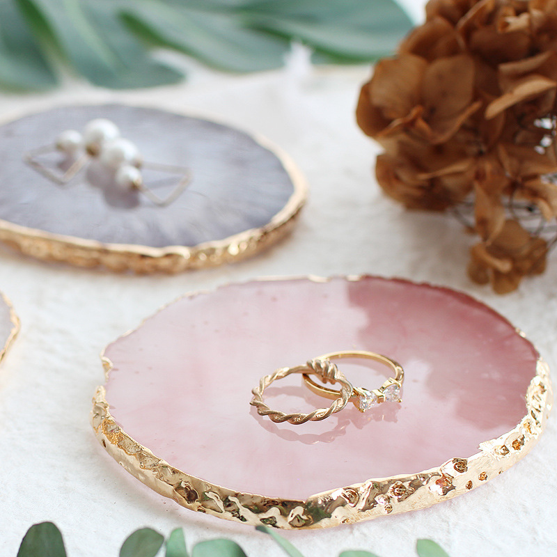 Item No.: Pink resin plate with gilt edge, white resin plate with gilt edge, purple resin plate with gilt edge, three-color set of gilt resin plate, support one piece