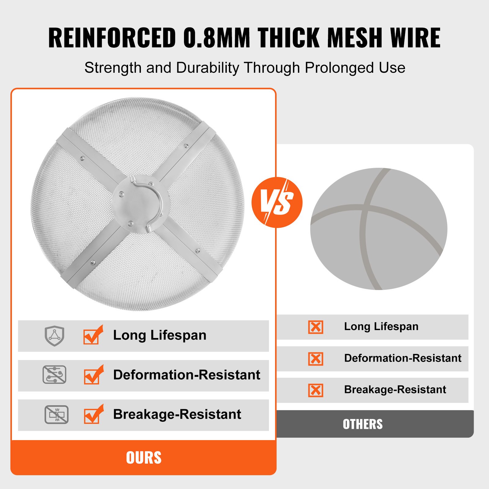 Tight Mesh: The tightly woven mesh design provides electrostatic protection against stray sparks. Mesh Wire Thickness: φ0.03 inch / φ0.8 mm, Mesh Hole Diameter: φ0.08 inch / φ2 mm, enhancing durability and sturdiness. The 2mm mesh effectively safeguards sparks and ash from escaping, while allowing oxygen to flow into the fire, enabling you to conveniently monitor the fire's intensity.