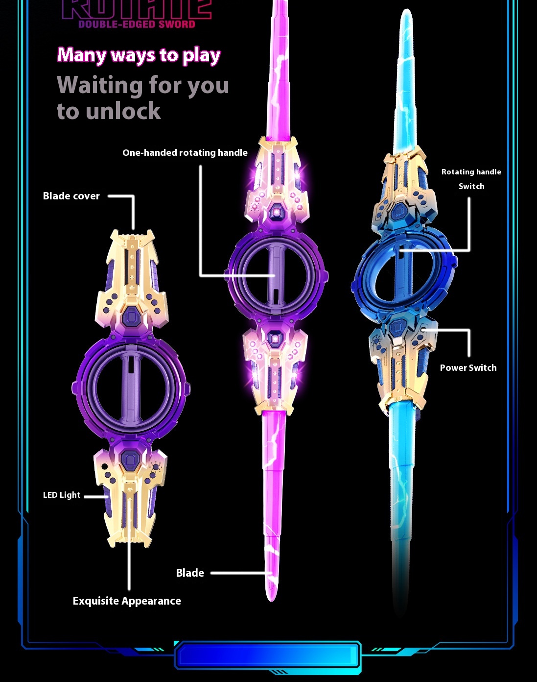 Color: double-edged fire spinning sword with charging cable [electroplated purple gold], double-edged fire spinning sword with charging cable [electroplated blue gold], double-edged fire spinning sword [gradient purple] with charging cable, double-edged fire spinning sword [gradient green】 with charging cable, double-edged fire spinning sword [Silver Gray] with charging cable