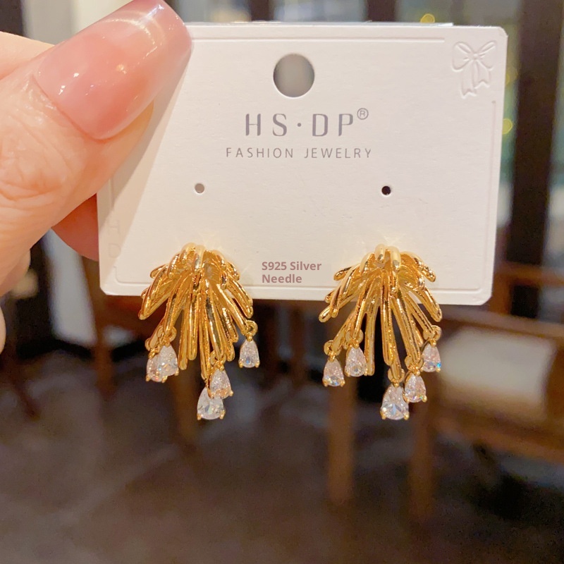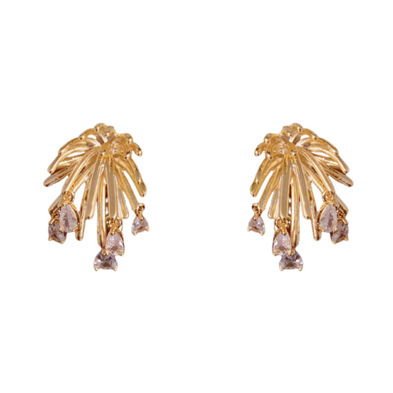 Color: gold metal fireworks zircon water drop earrings (thick gold plated), thick silver metal fireworks zircon water drop earrings