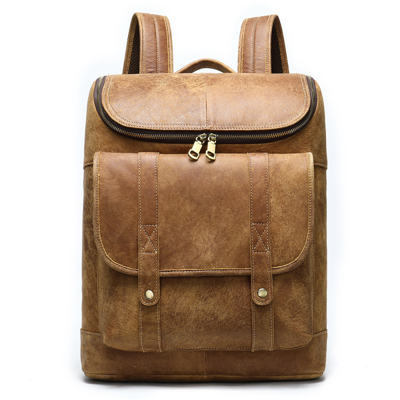 Material:Genuine LeatherColor:BrownSize:32cm*12cm*39.5cm(L*W*H)Style:BackpackStructure:main bag, zip pockets,object bits,Computer bit