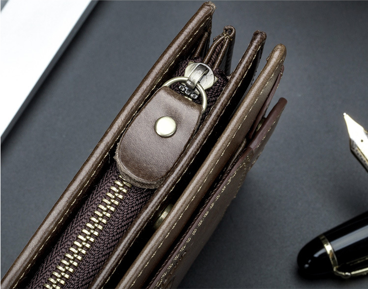 The internal structure of the packet: key slot, photo slot, zipper compartment, bill holder, card slot, secret compartment, change slot, check slot