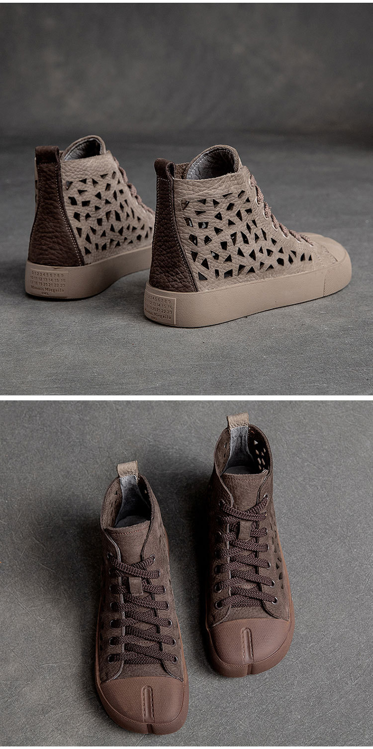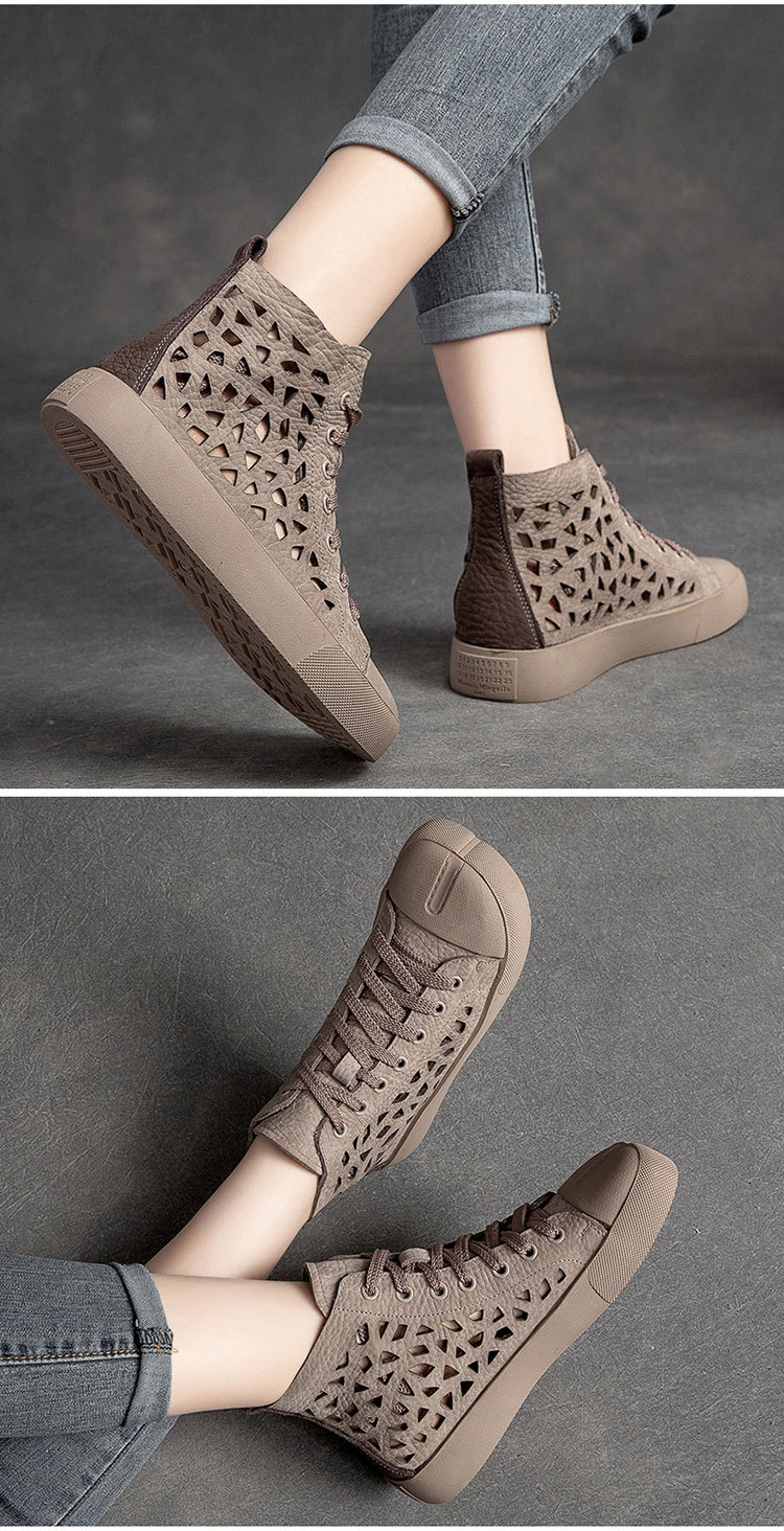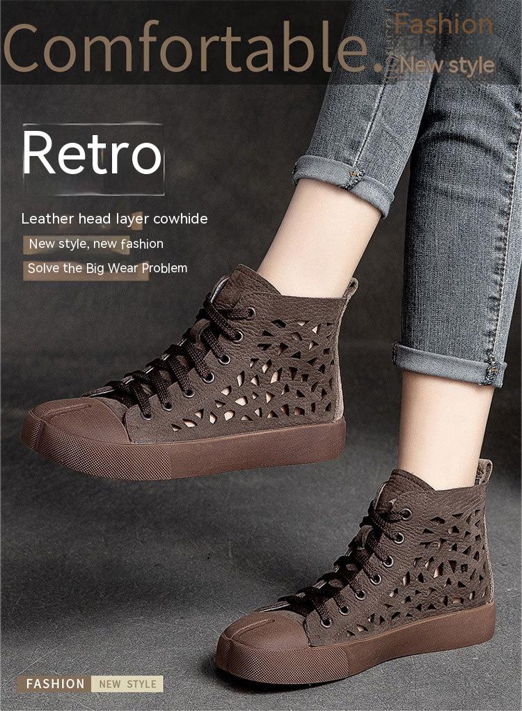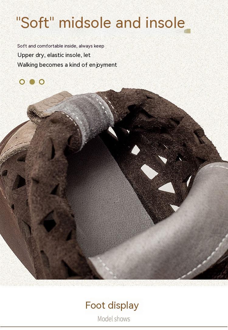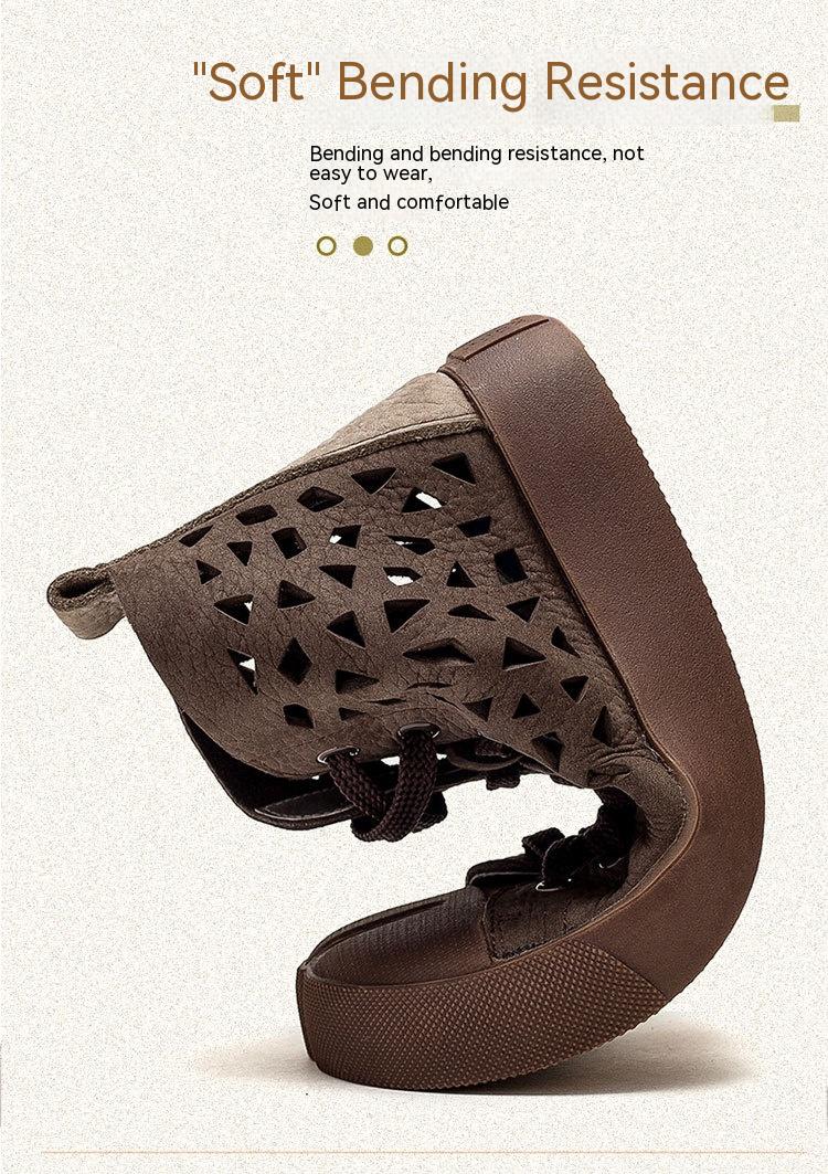 First Layer Cowhide Retro Rub Colored Hollow Square Toe British Sandals Boots