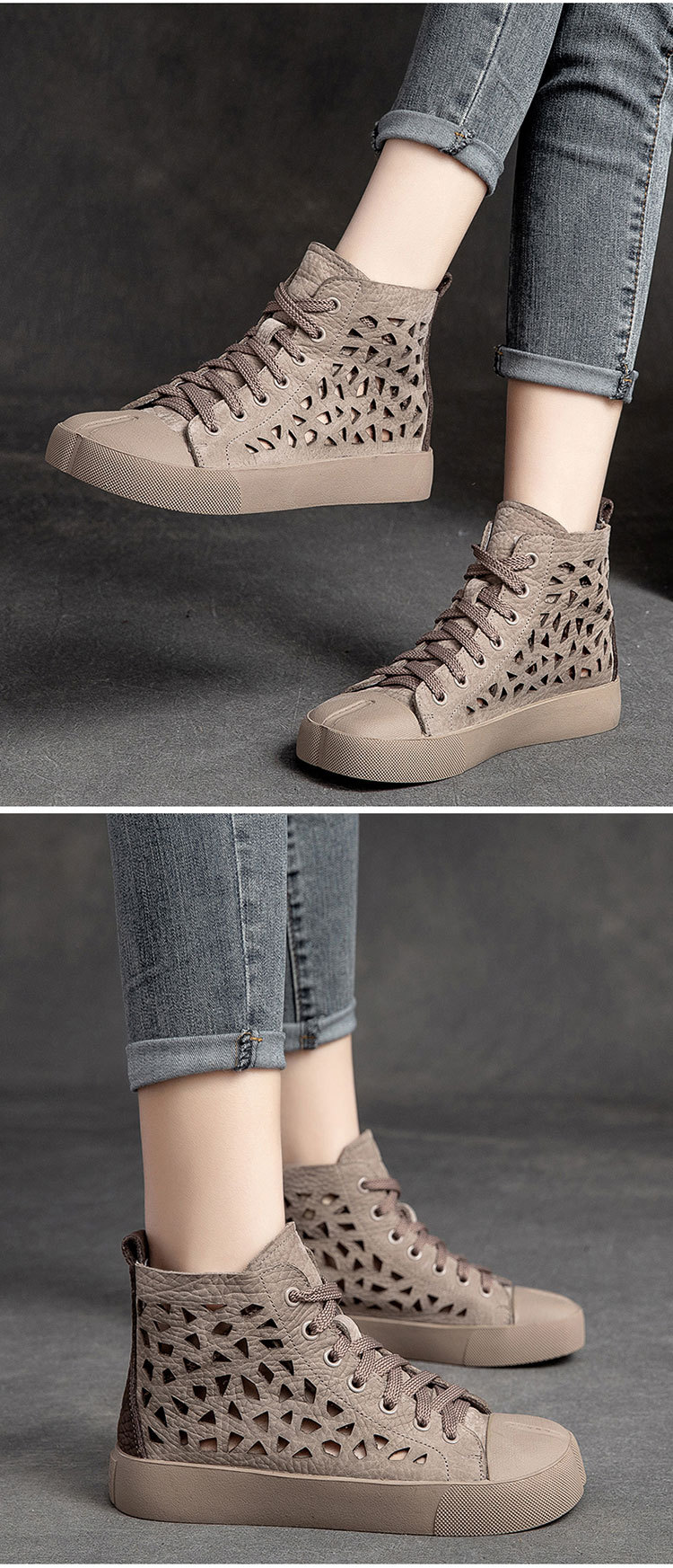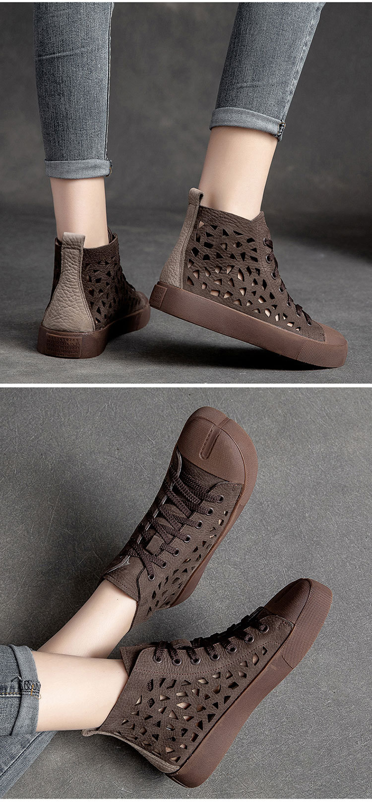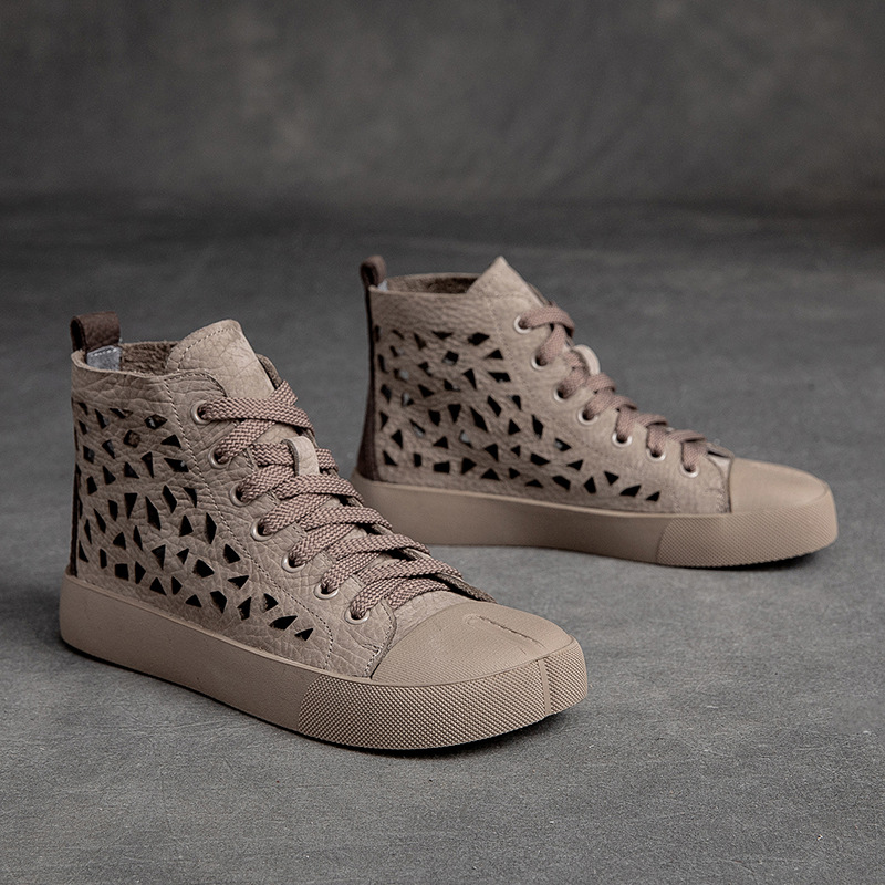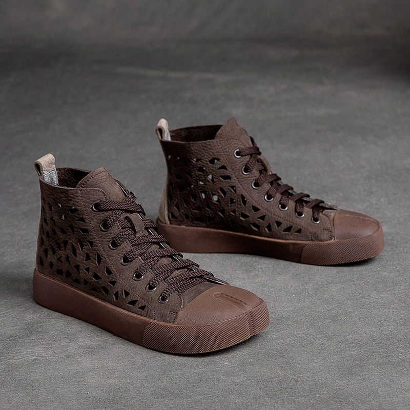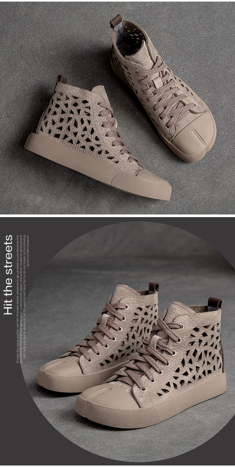 First Layer Cowhide Retro Rub Colored Hollow Square Toe British Sandals Boots