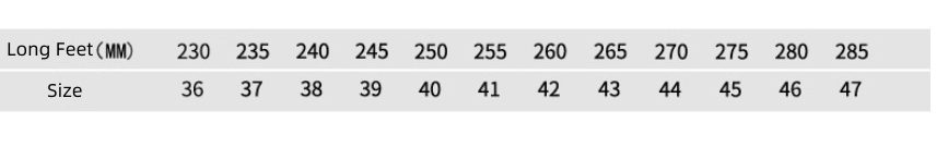 Size: 36, 37, 38, 39, 40, 41, 42, 43, 44, 45, 46