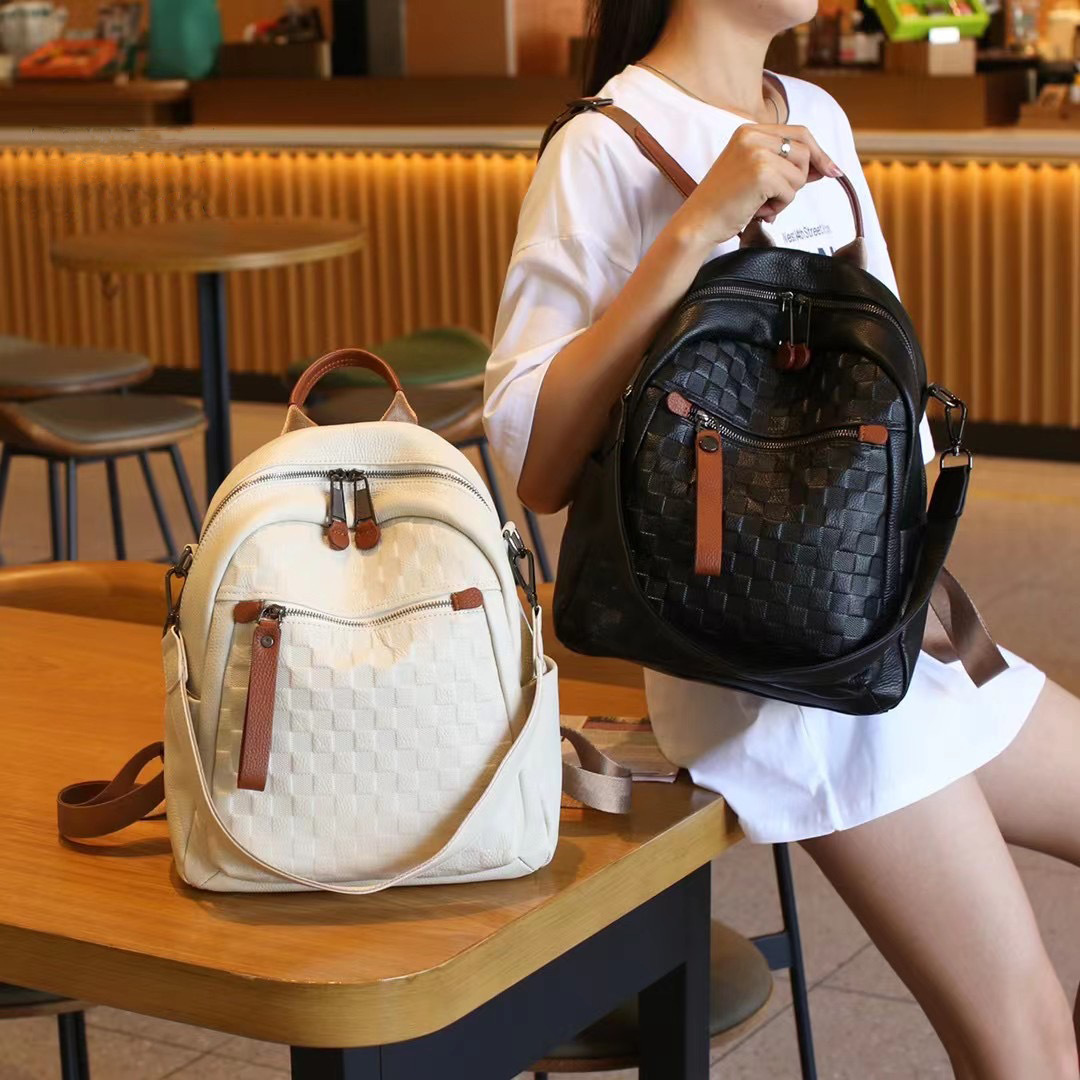 First Layer Cowhide Women's Diamond Plaid Backpack