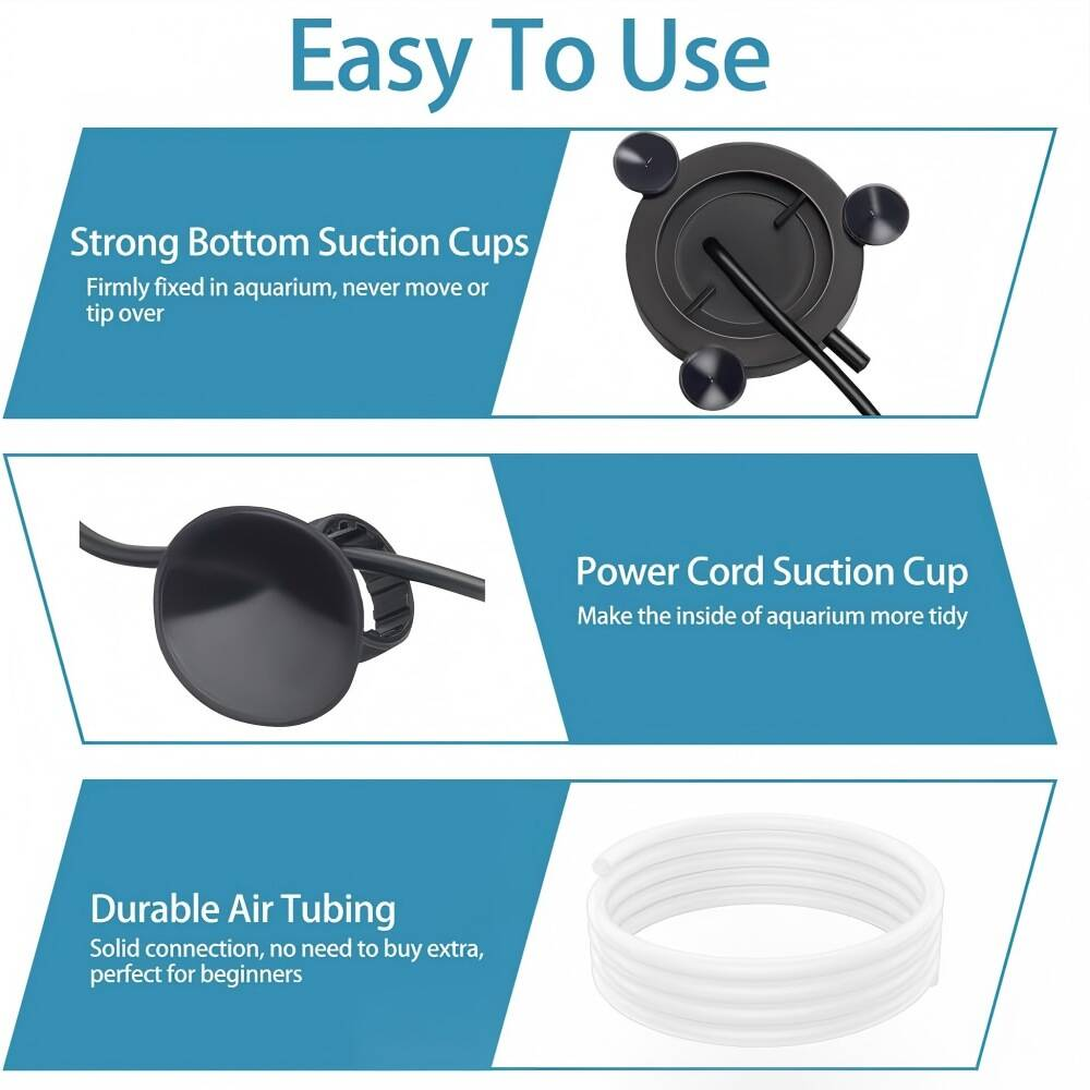 Fish Tank Bubbler with 6-Color Auto Changing LED Lights | Aquarium Bubbler Stone Nano Stone Diffuser for Oxygenation | Fish Tank Air Stone Includes Tubing & Suction Cups | Tank Bubbler for Fish Tank Air Stones Decoration