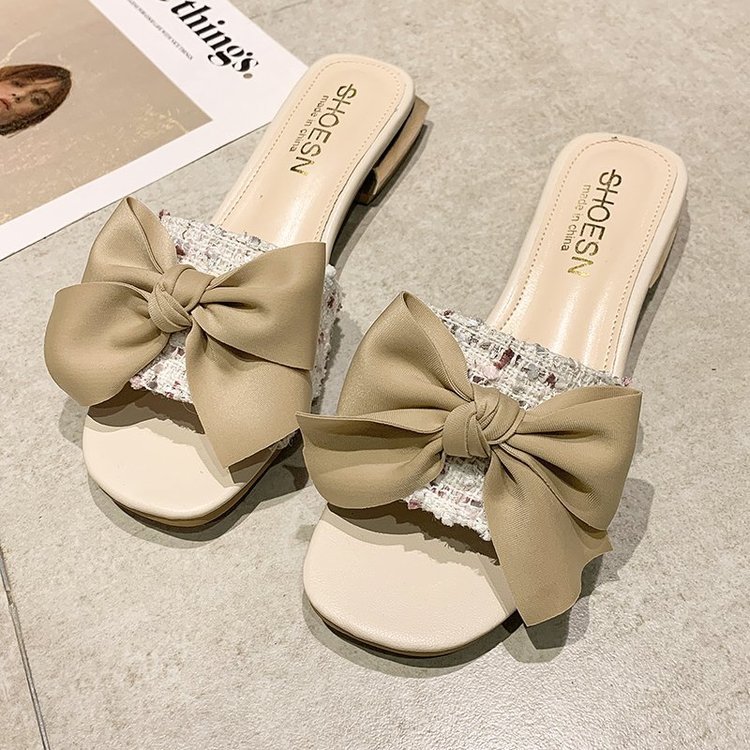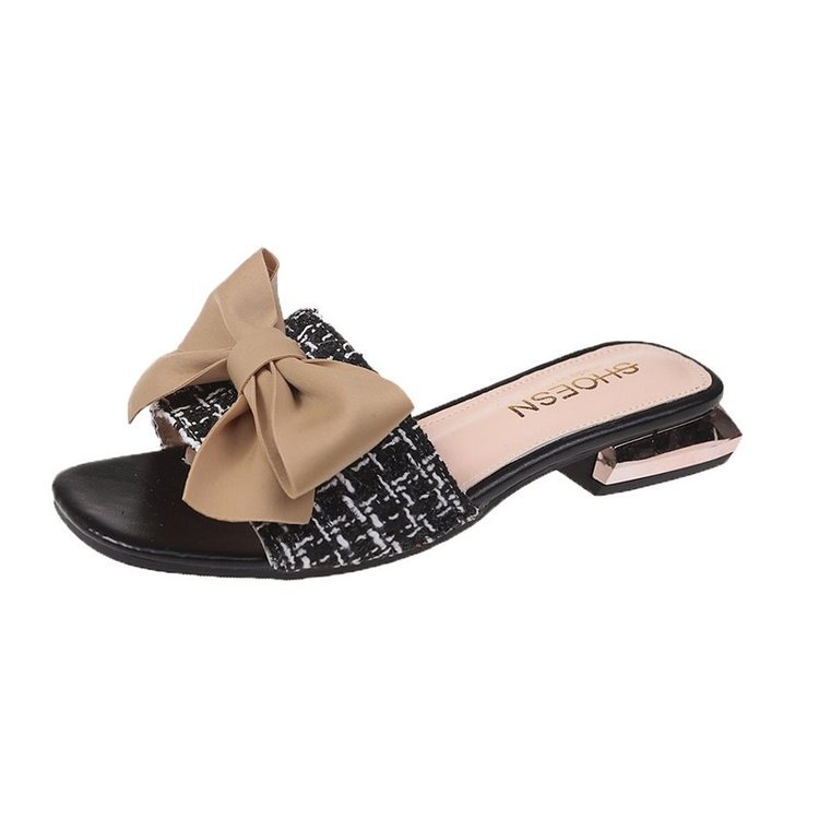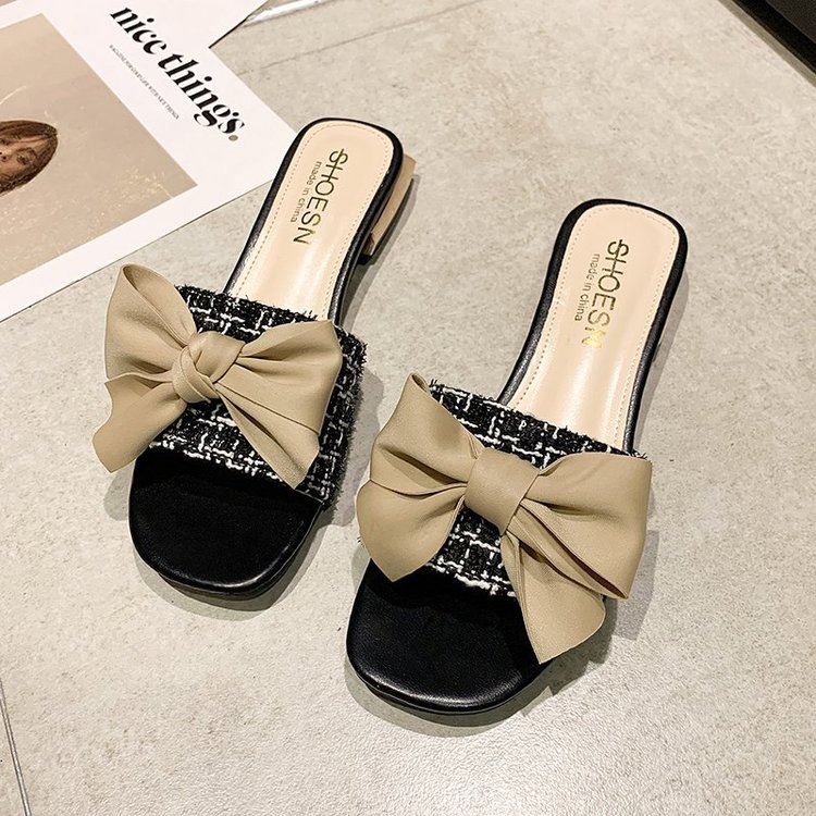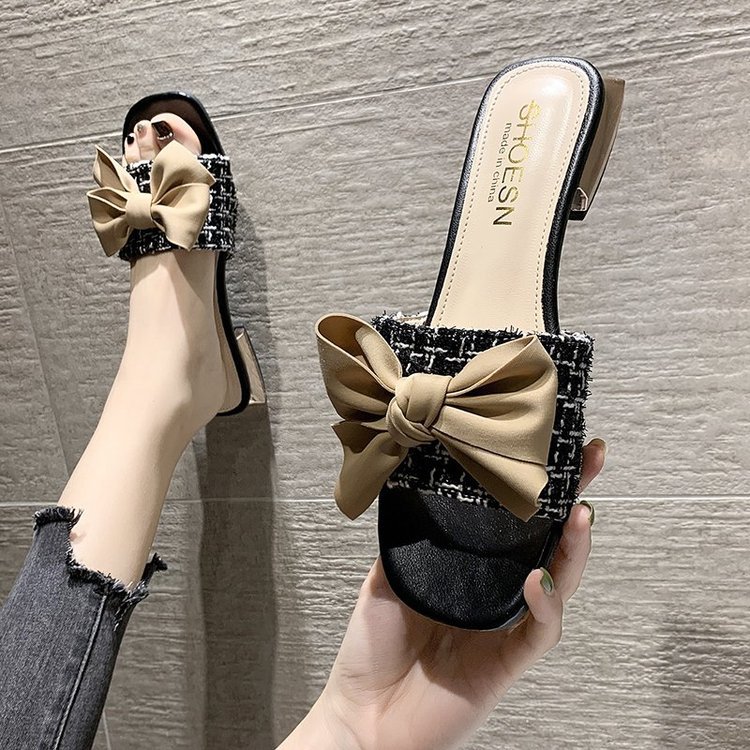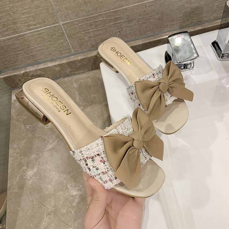 Fish Tip Bow Slippers Ladies' Thick Heel Toe