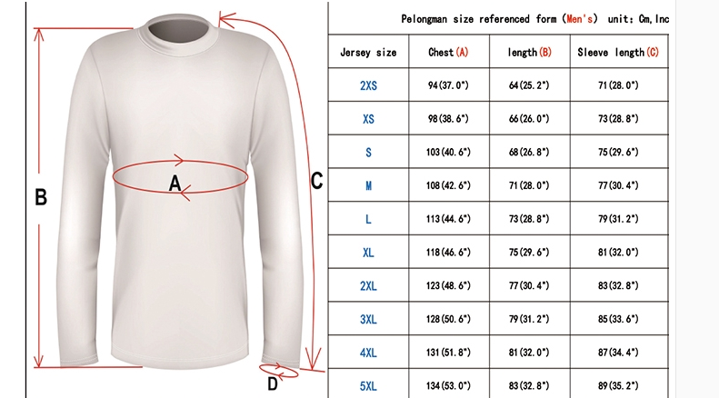 Dimensions: XS, S, M, L, XL, 2XL, 3XL, 4XL, 5XL