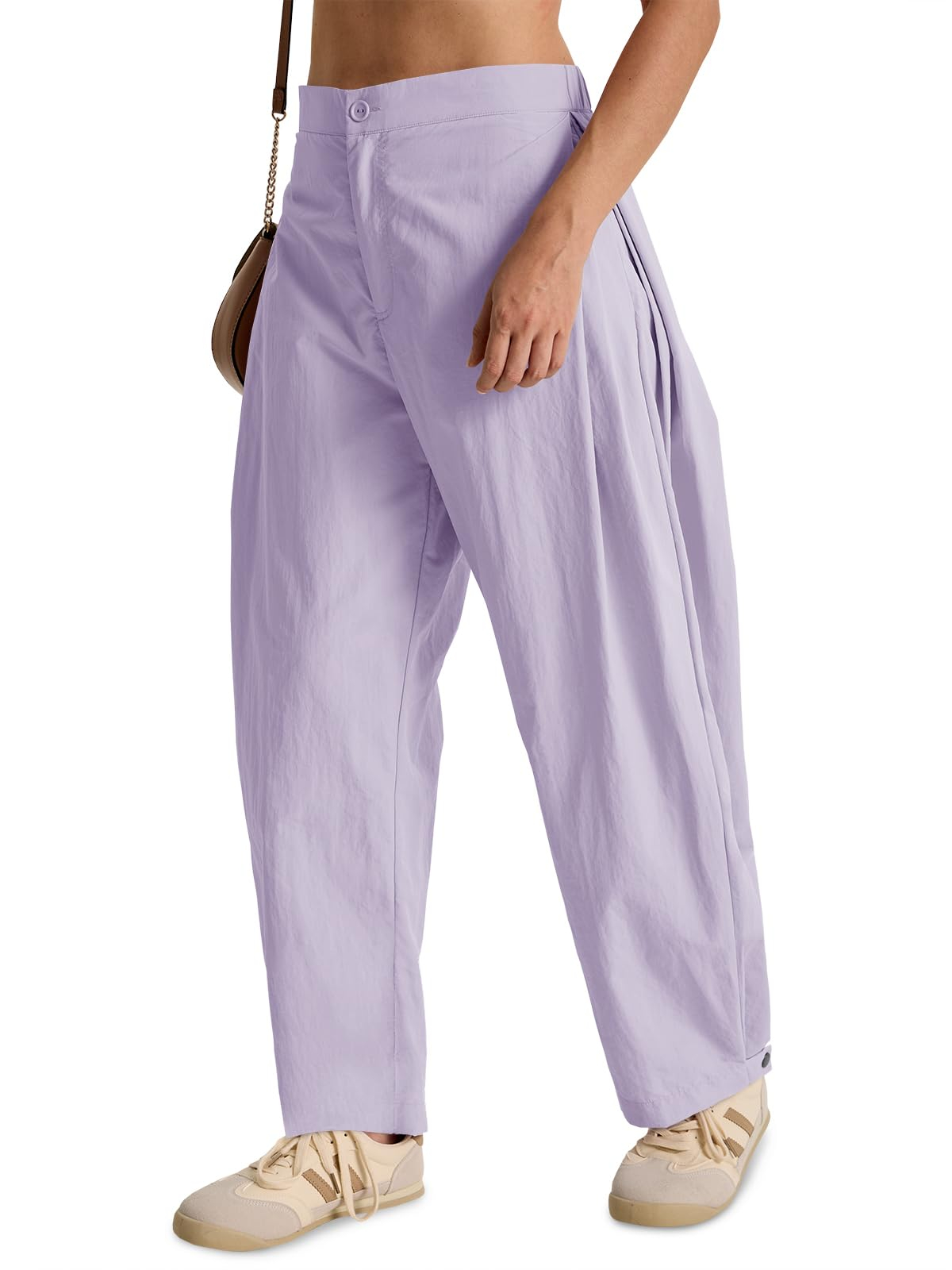 PANTS DESIGN: Features a unique barrel leg cut, side pleating for added volume and movement, and a stylish front zipper detail that enhances the modern silhouette.