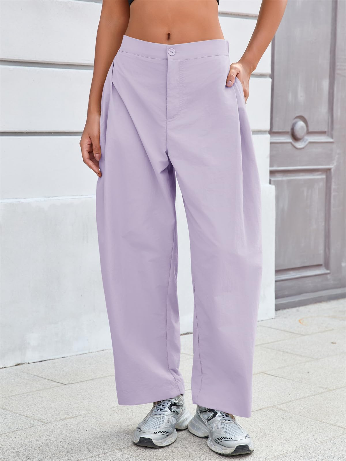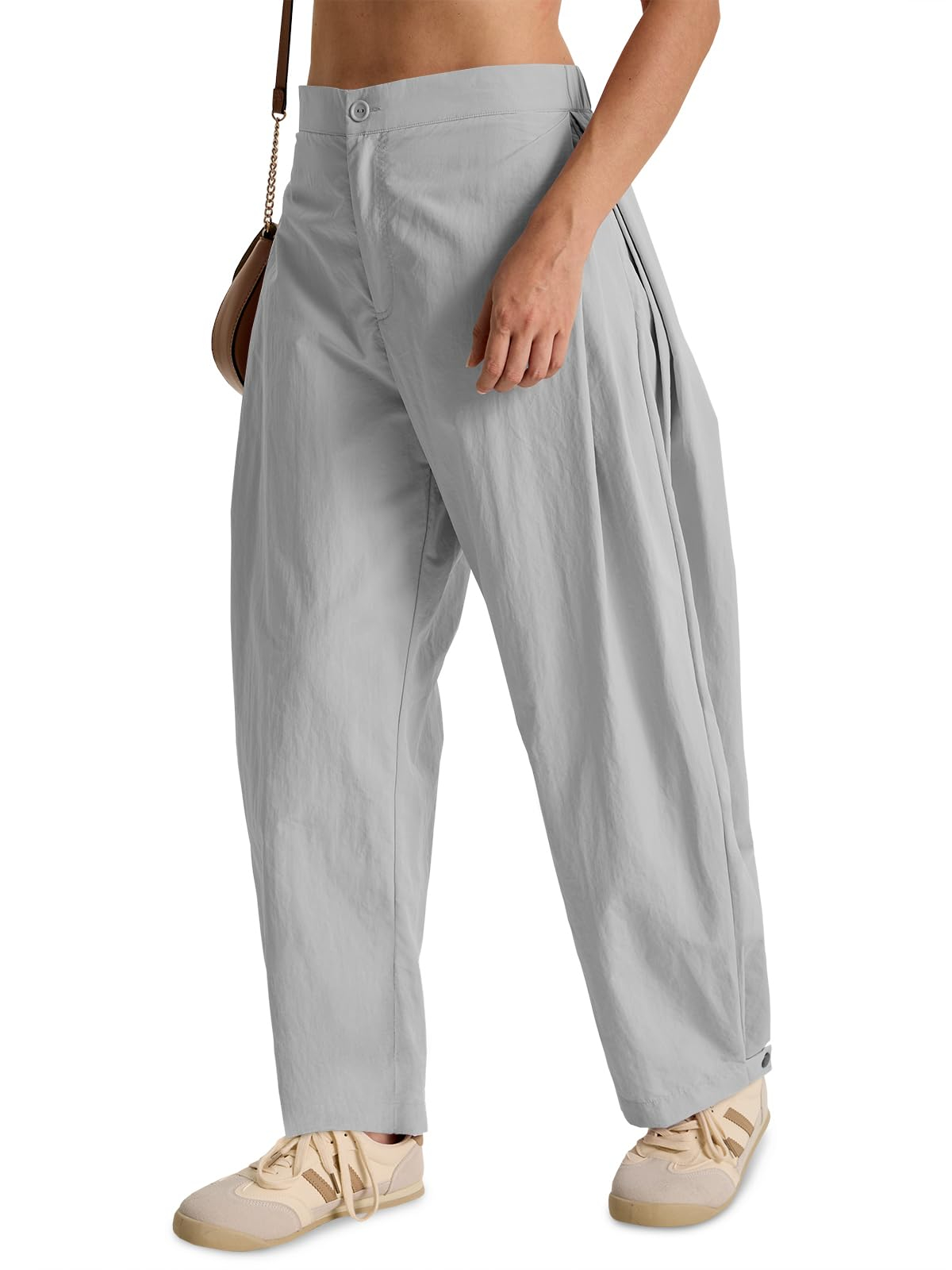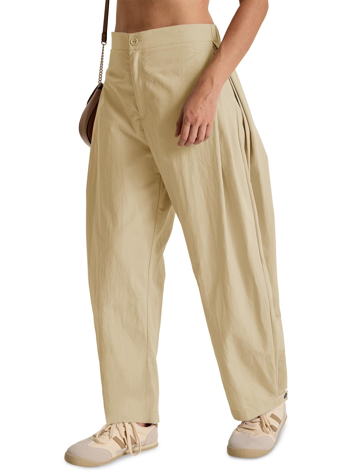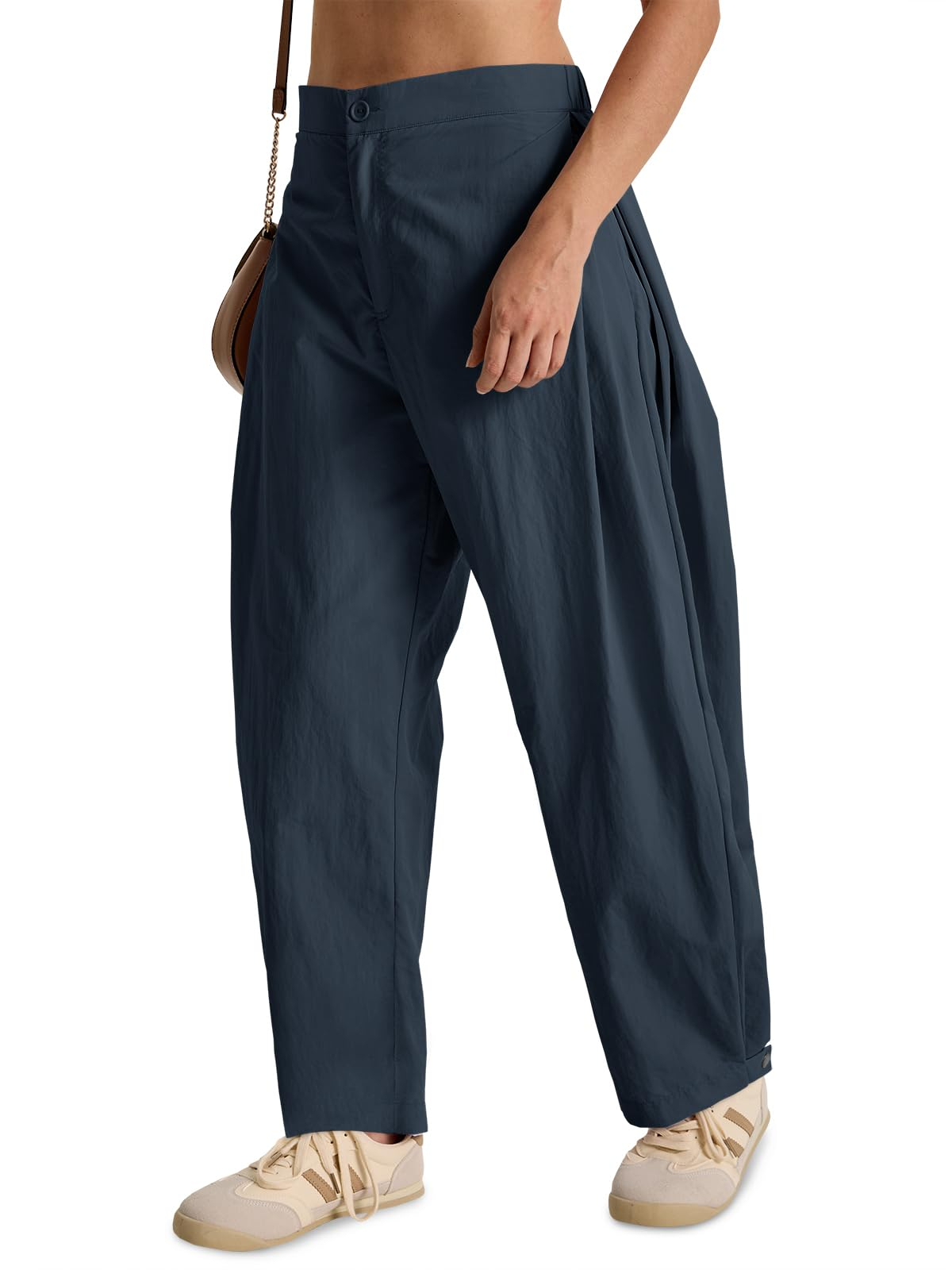 Fisoew Barrel Pants Women Casual Wide Leg Baggy Pants Side Pleated Horseshoe Style Trousers With Pockets